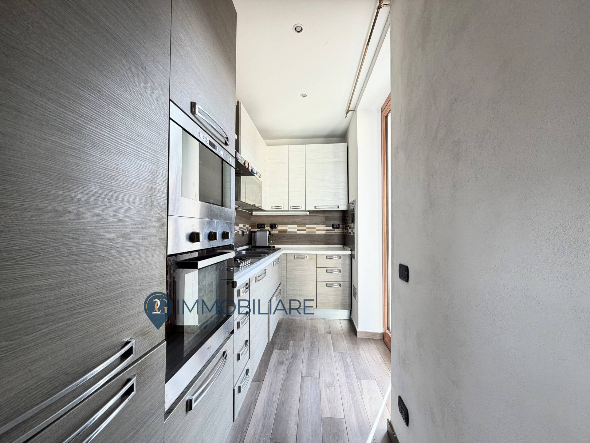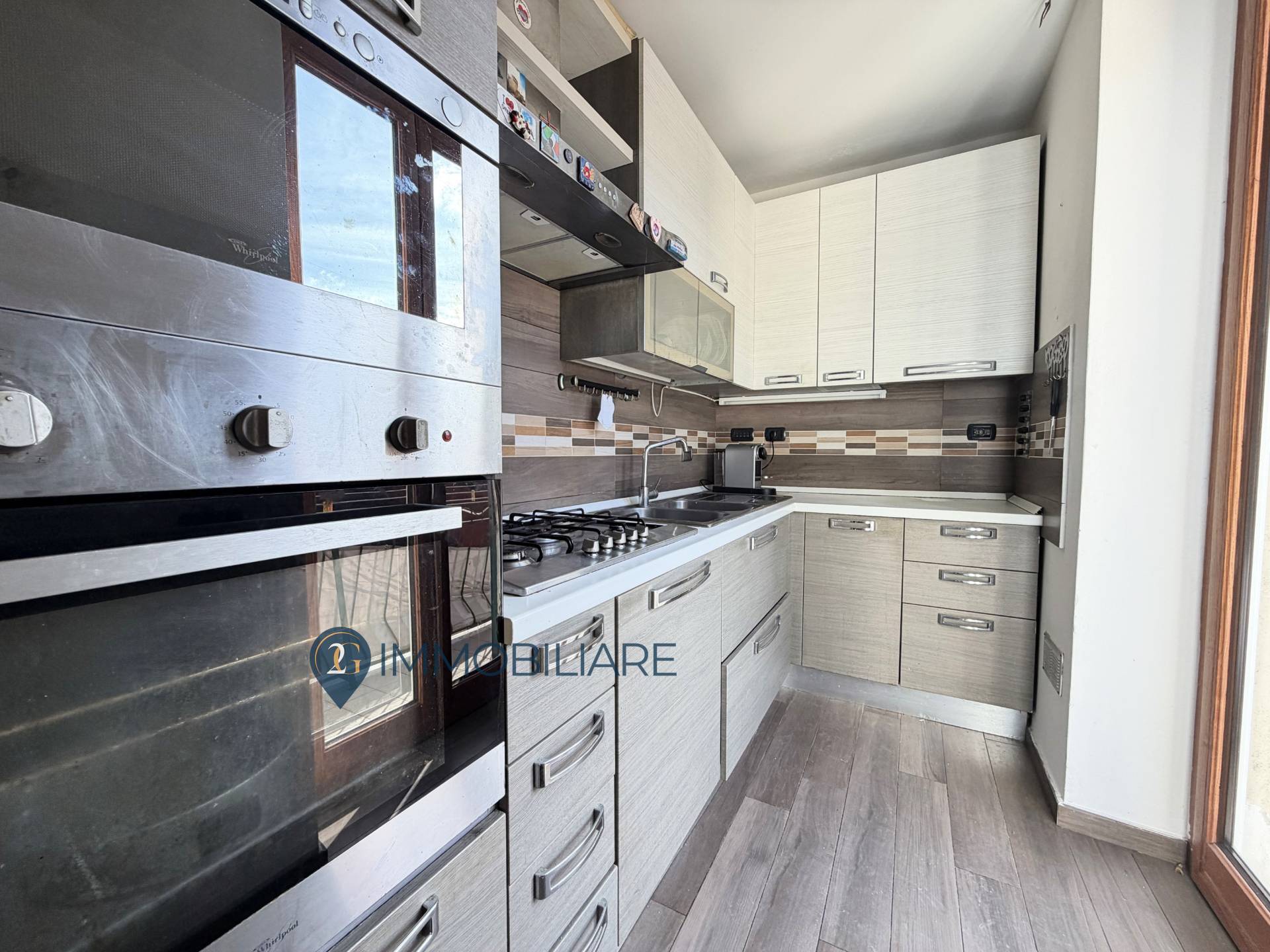 La cucina, non abitabile ma funzionale, ha accesso diretto al balcone con splendida vista mare e citt. Il balcone dotato di tenda da sole e di pratico braccio elettrico per il sollevamento della spesa, un dettaglio che rende la quotidianit ancora pi comoda.
