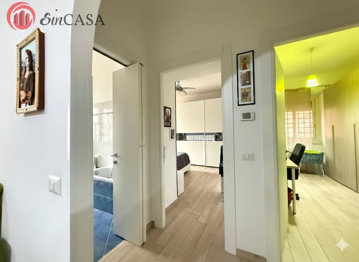 La zona notte comprende una spaziosa camera matrimoniale, una cameretta versatile adatta come stanza per bambini, studio o camera per gli ospiti, e un bagno finestrato con vasca.