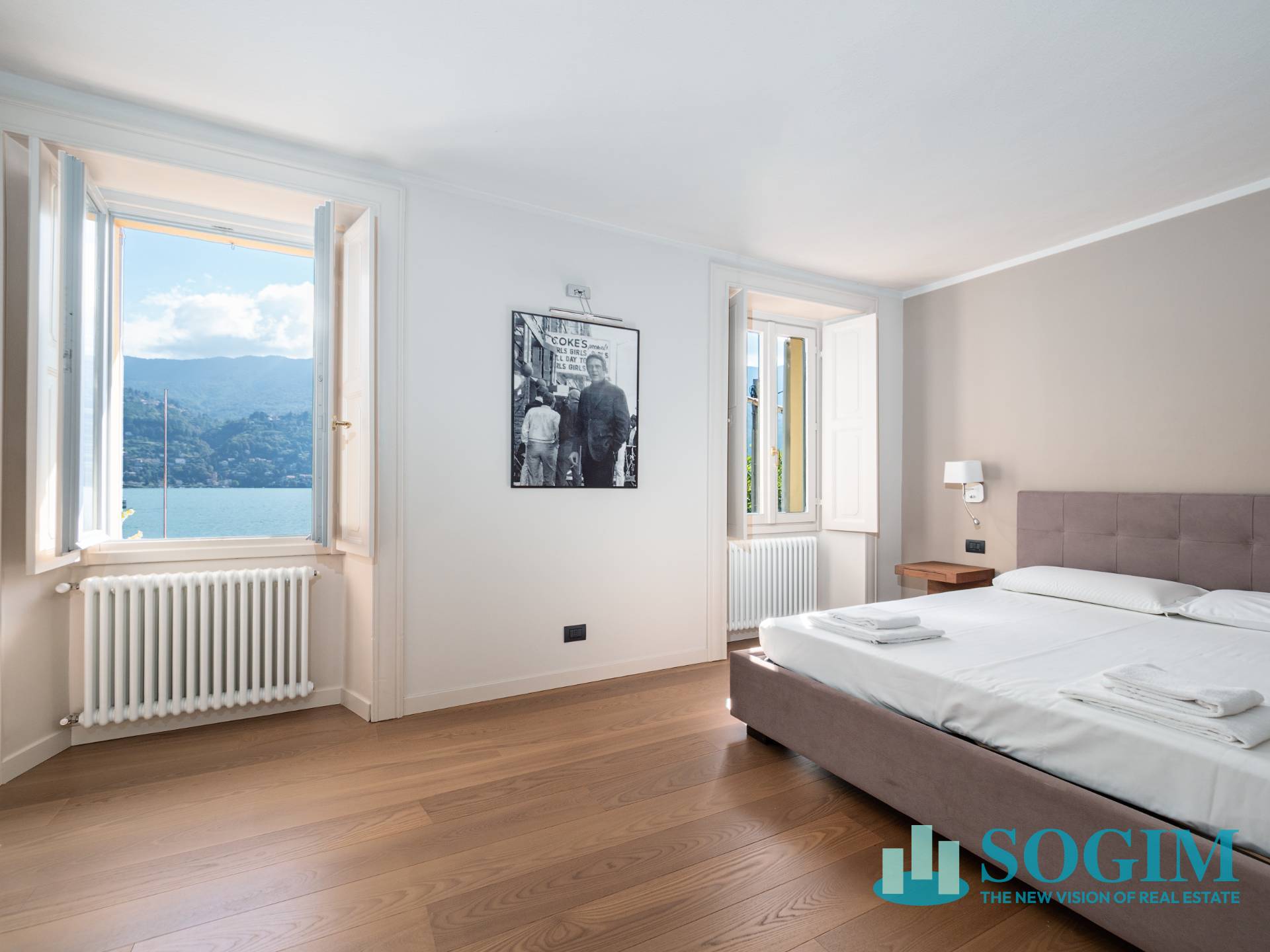 Questa esclusiva propriet, totalmente ristrutturata con ottime finiture, gode di un'esposizione su tre lati e di una splendida posizione fronte lago che si lascia apprezzare da ogni angolo della casa . L'atrio di ingresso a questa gradevole abitazione accompagna verso un lungo e luminoso corridoio che conduce a due ampie camere da letto matrimoniali con bagni ensuite e accesso al delizioso balcone vista lago. La zona notte accoglie due ulteriori camere matrimoniali impreziosite dal bagno ensuite, una quinta camera da letto oltre vani accessori ad uso ripostiglio e lavanderia, fornendo cos spazi confortevoli per il ristoro di una famiglia numerosa e di eventuali ospiti in visita.