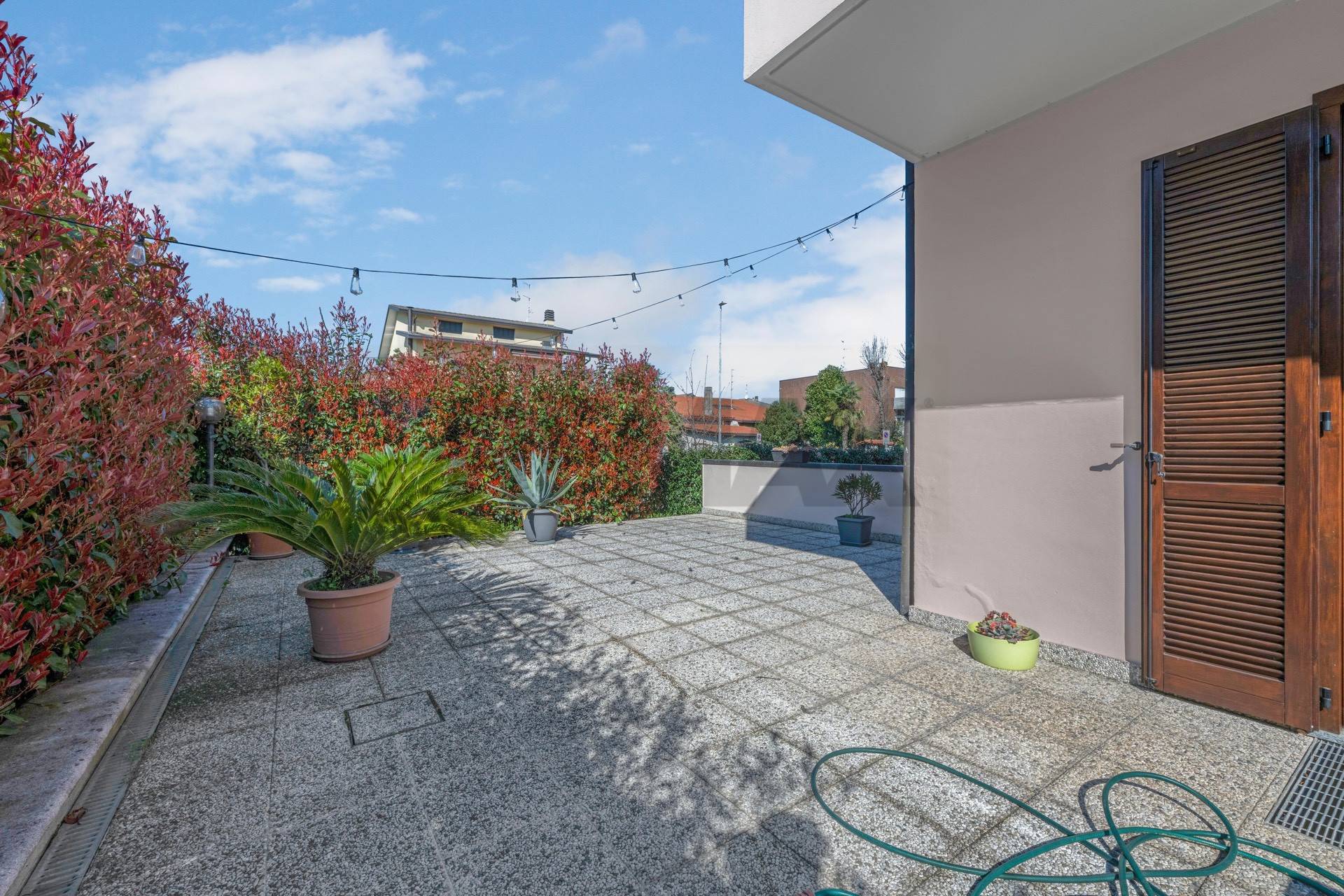 Da questo piano si accede direttamente a un ampio spazio esterno di propriet, circondato da siepi che garantiscono privacy e riservatezza.