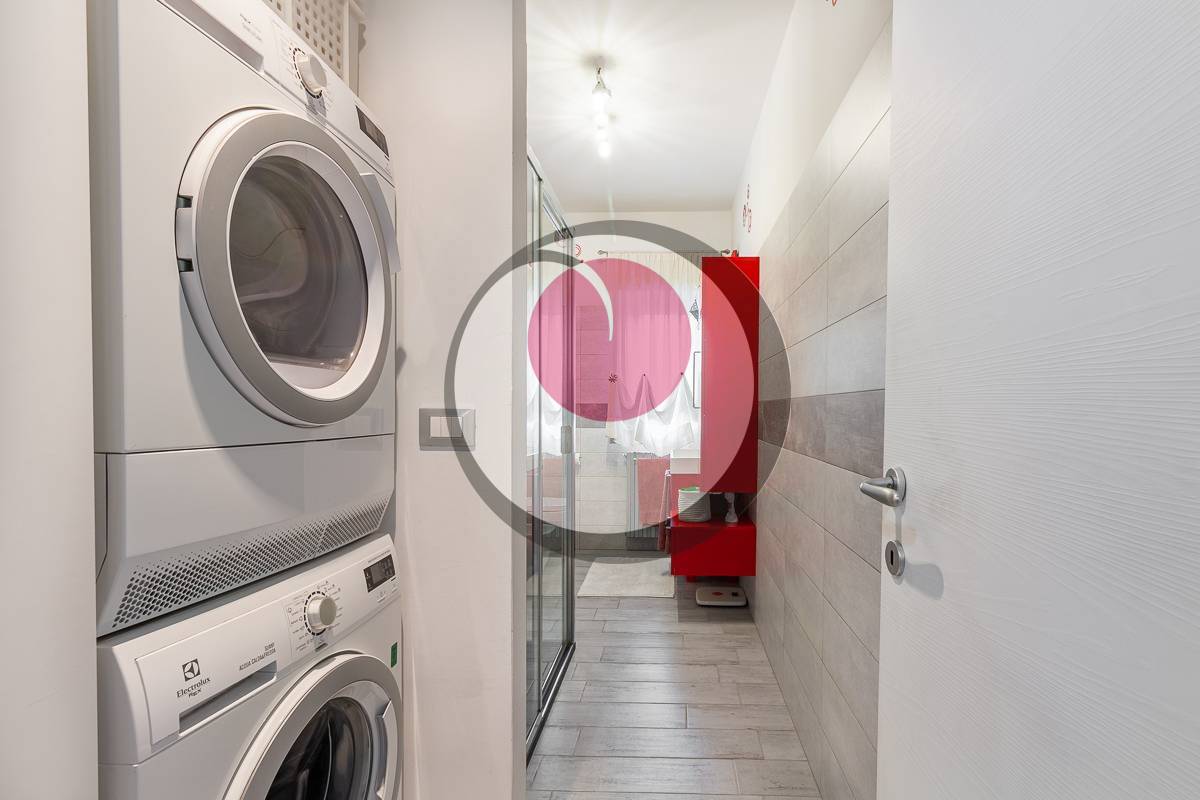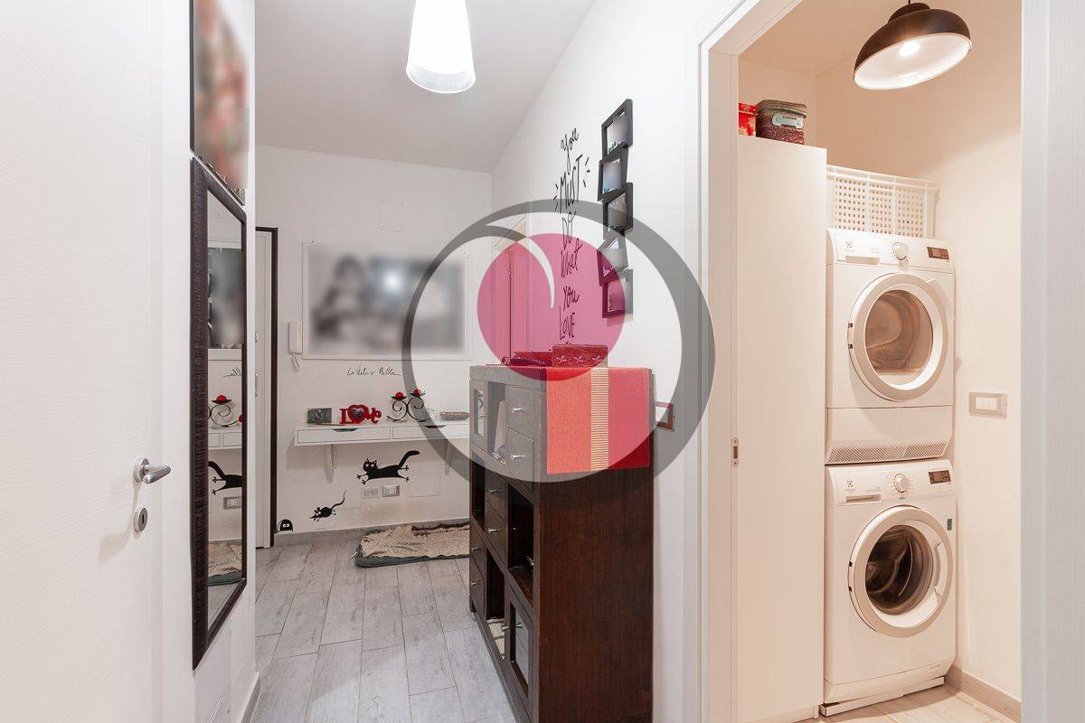 Ingresso su disimpegno, con pratico ripostiglio, che presenta da un lato un'accogliente zona giorno con comodo affaccio su balconcino, dall'altro una splendida cucina semi abitabile.