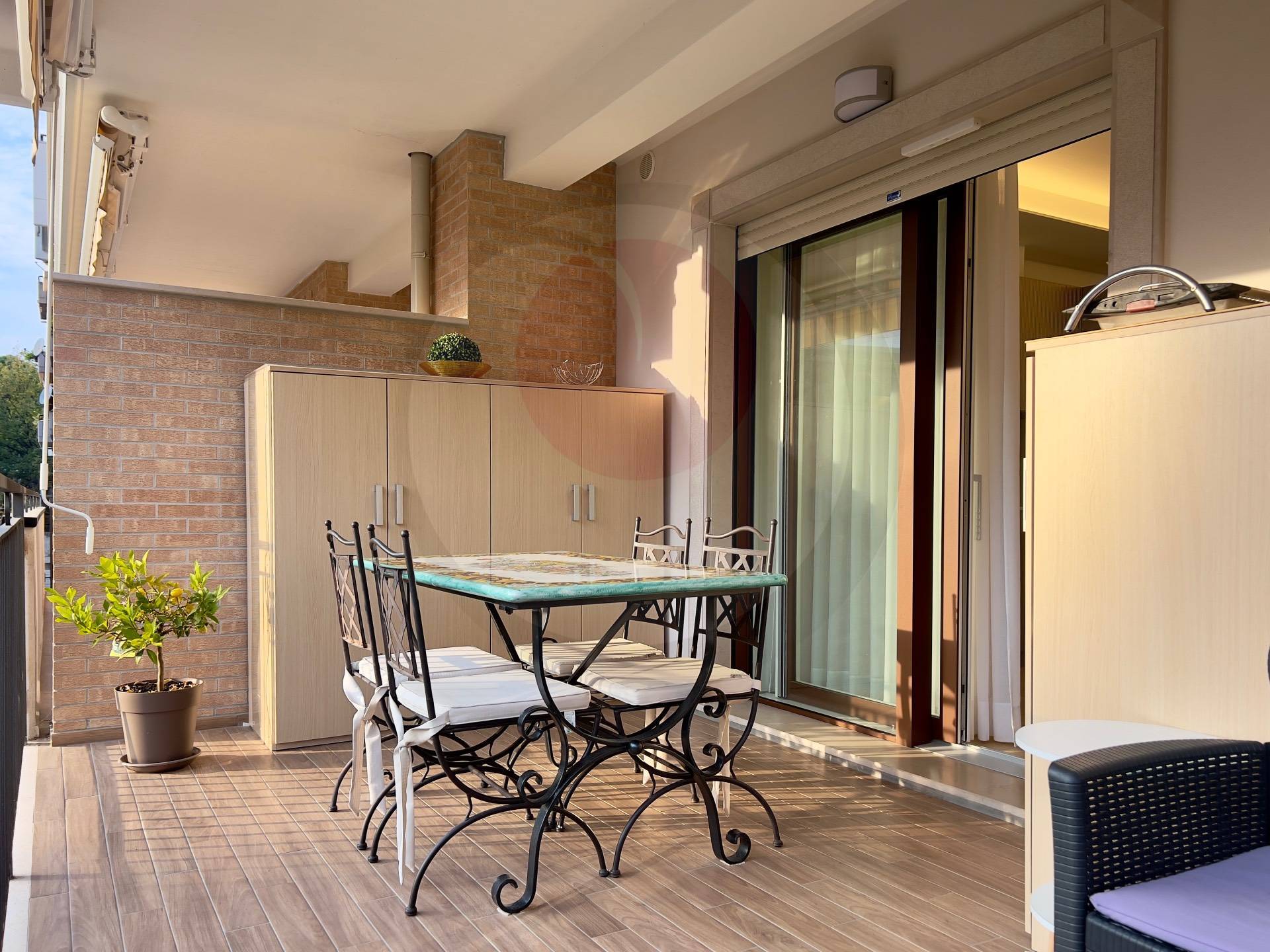 Un pratico disimpegno di ingresso, ben attrezzato con armadiatura, ci accoglie in quella che la zona giorno: un ambiente accogliente e raffinato, impreziosito dall'affaccio su un bel terrazzo che abbraccia buona parte dell'abitazione.