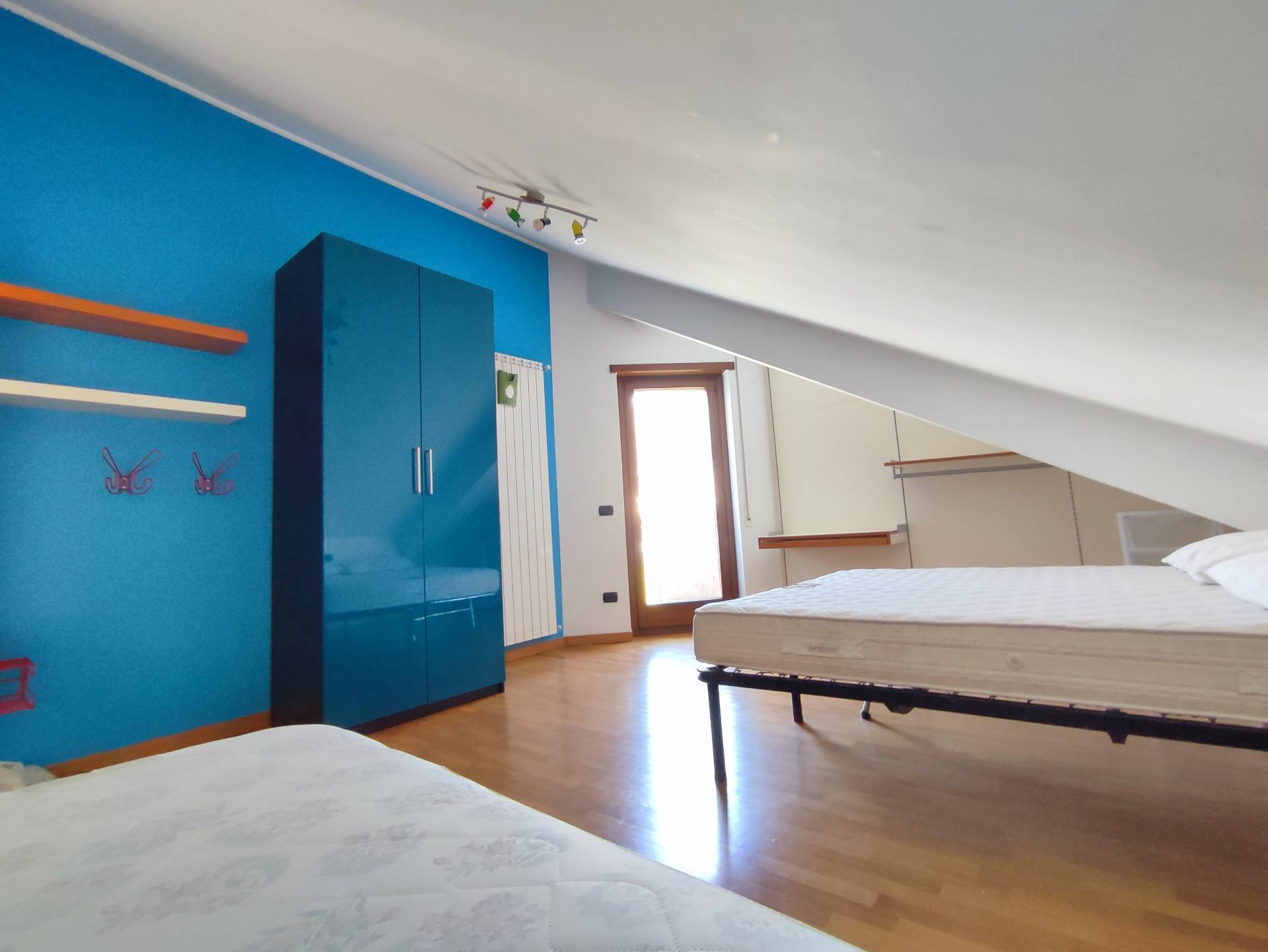 La soluzione, con spazi ampi e luminosi che si fondono armoniosamente con un design moderno e raffinato, si compone di ampio soggiorno con angolo cottura e canna fumaria, servito da terrazzo pamonarico di 20 mq ca, camera matrimoniale con cabina armadio, camera tripla e camera singola il tutto servito da balcone,comodo bagno con vasca idromassaggio jacuzzi, e bagno con doccia sauna, per vivere momenti di puro relax.
