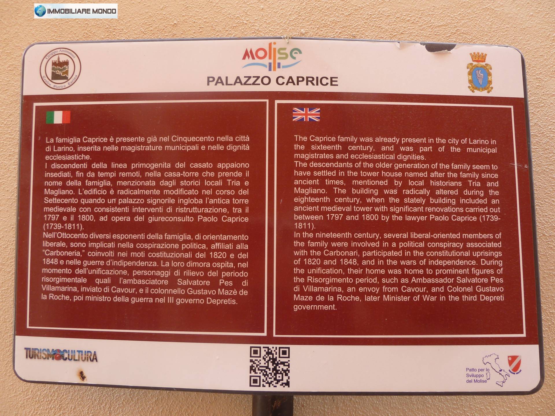 Il palazzo posto nel cuore del centro storico della citt di Larino, a poca distanza dalla Chiesa Cattedrale in stile romanico-gotico, dal Palazzo ducale sede del Municipio e del Museo civico, nonch da alcuni monumenti ed edifici di epoca medioevale e rinascimentale.