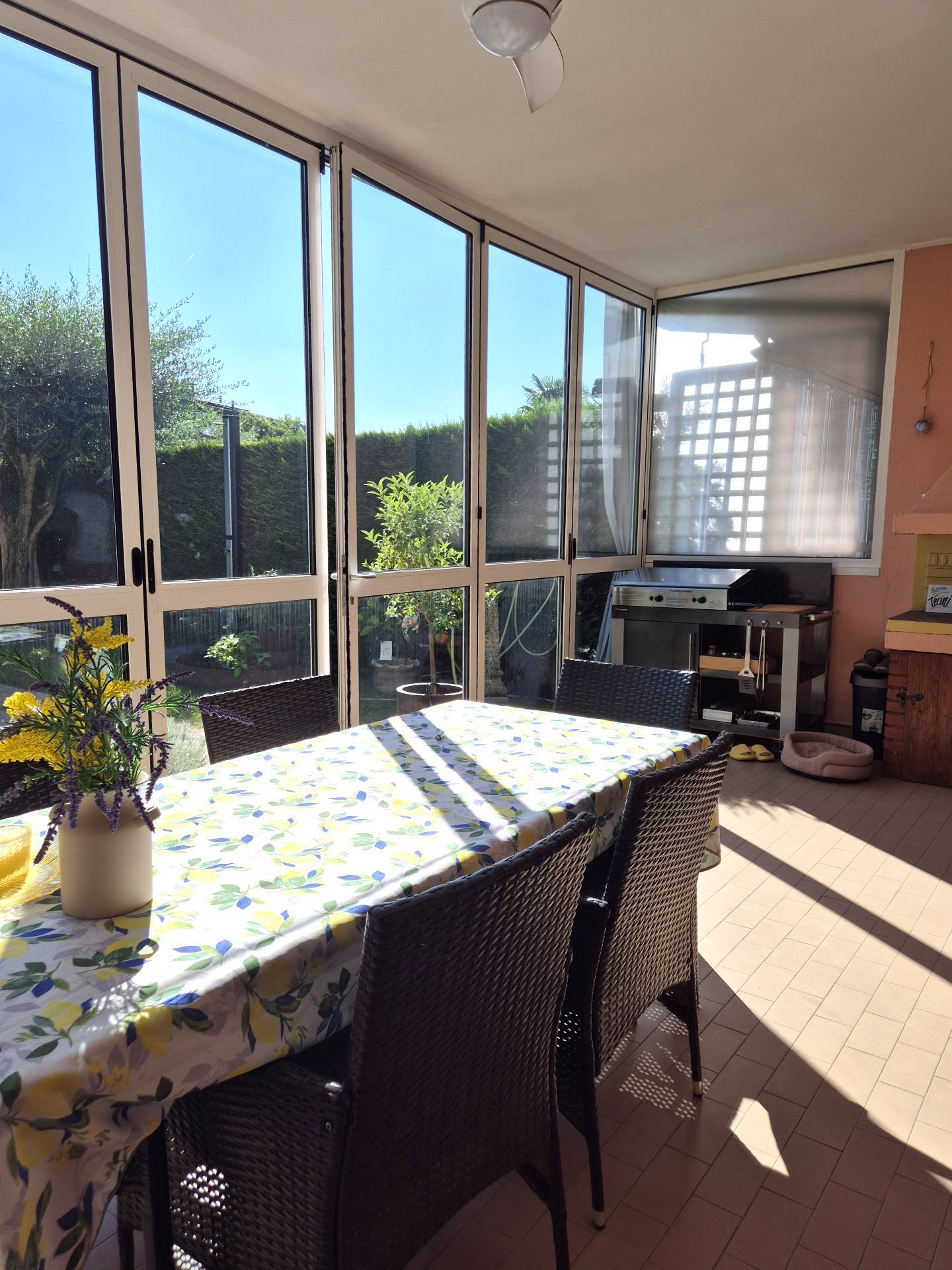 Attraversando il giardino si accede ad una luminosa veranda con barbecue , adatta a pranzi conviviali con amici , soggiorno con cucina, cameretta, camera matrimoniale con ampia veranda , bagno finestrato.