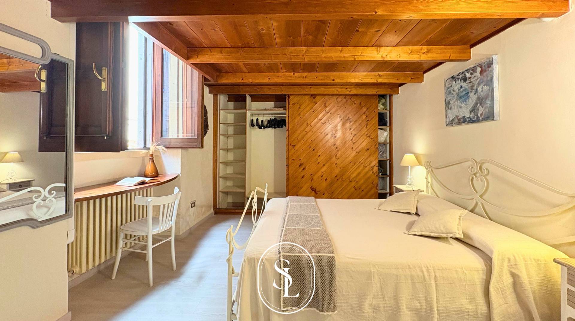 Labitazione, impreziosita da autentiche volte a stella e da infissi in legno originali, si distingue per il perfetto equilibrio tra stile tradizionale e comfort moderno.