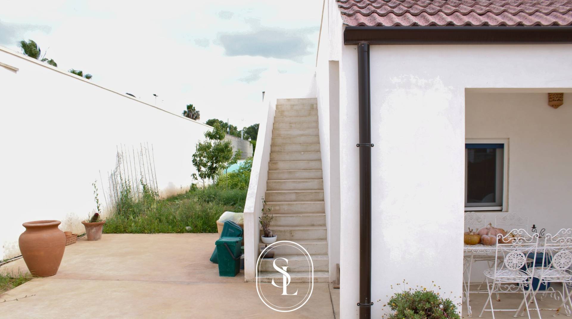 Esternamente una veranda coperta di circa 30 mq, in parte tegolata, ideale per godere degli spazi esterni anche nelle mezze stagioni.