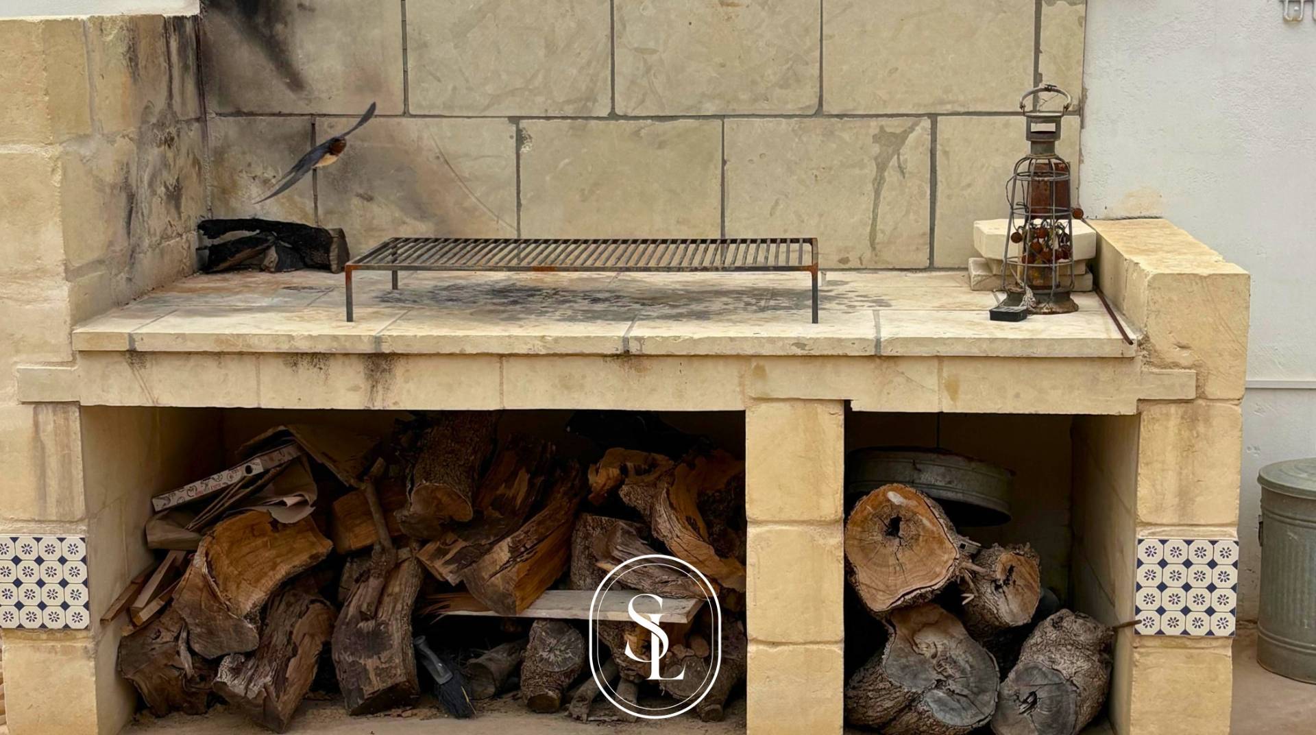 Nel giardinetto si trovano un camino in pietra per il barbecue e una comoda pilozza esterna, elementi che impreziosiscono ulteriormente la vivibilit dellarea.