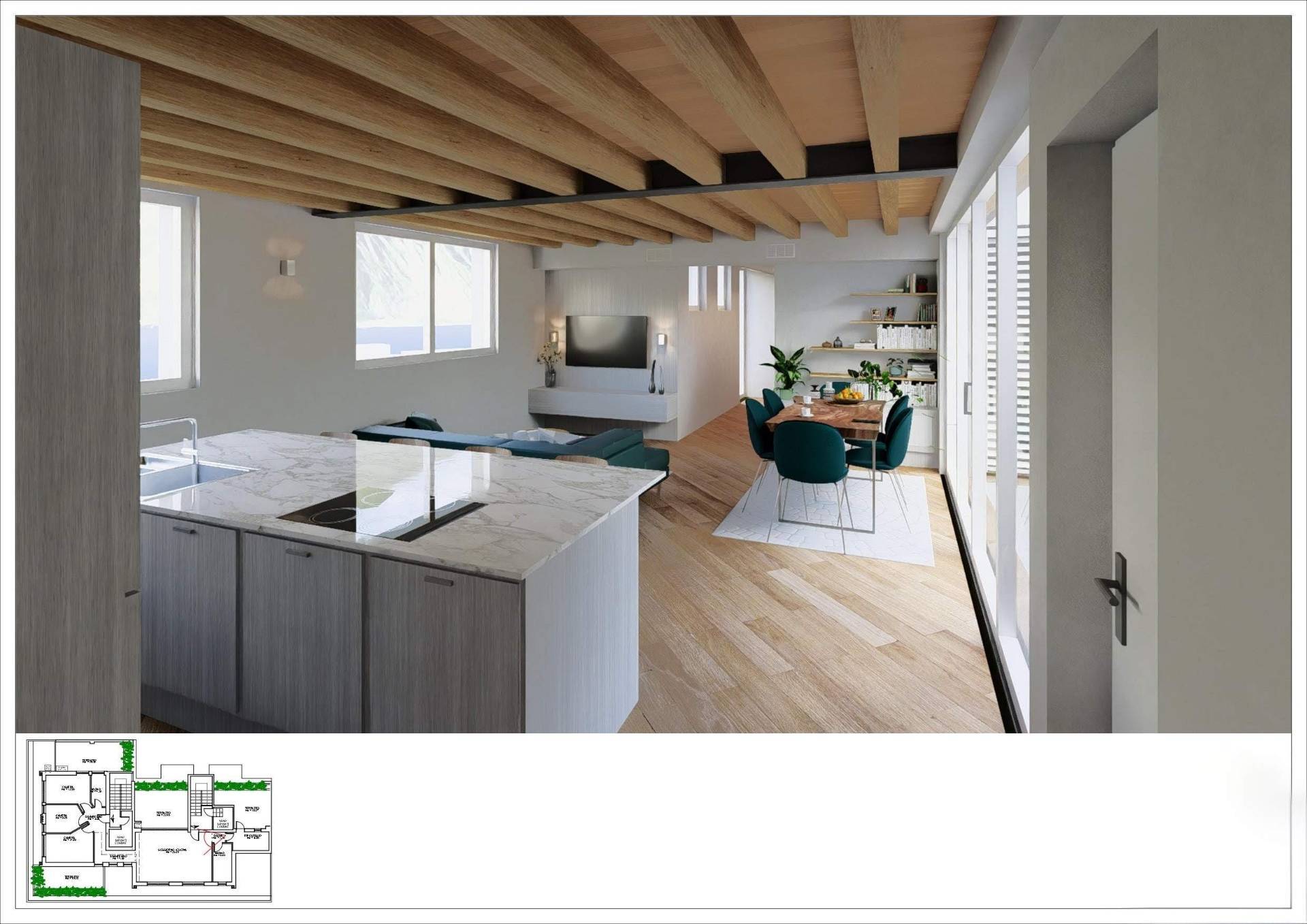 Costruito ex novo all'ultimo piano di un edificio anni '60 con facciate nuovissime, composto da ampio soggiorno living con cucina a vista, tre camere, doppi servizi, locale stireria/lavanderia, 4 godibili TERRAZZI e cantina.