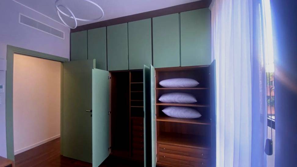 L'appartamento dispone anche di un accesso secondario dalla cucina e di una stanza con attacchi cucina e bagno in camera da adibire eventualmente ad alloggio per i domestici.