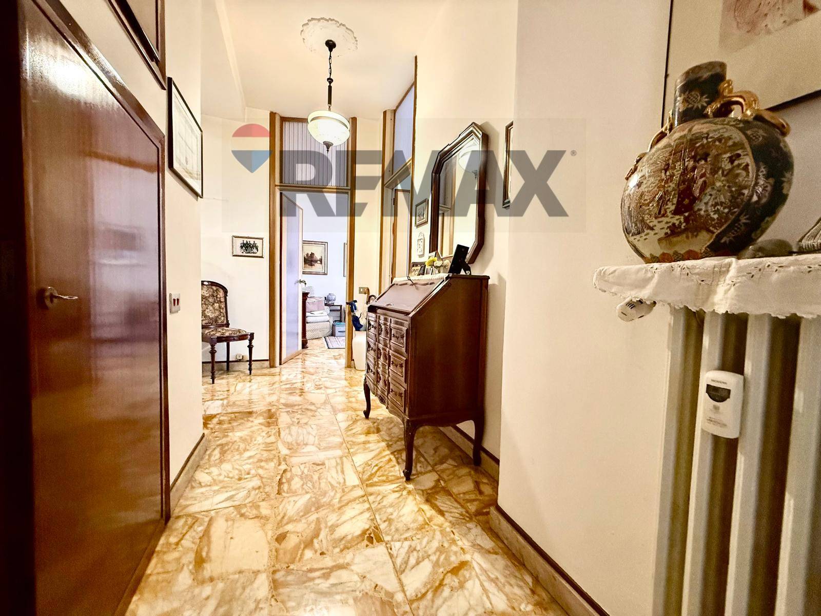 Lappartamento dispone inoltre di riscaldamento centralizzato con termovalvole, climatizzazione e serramenti in alluminio con doppi vetri, elementi che contribuiscono al comfort abitativo.