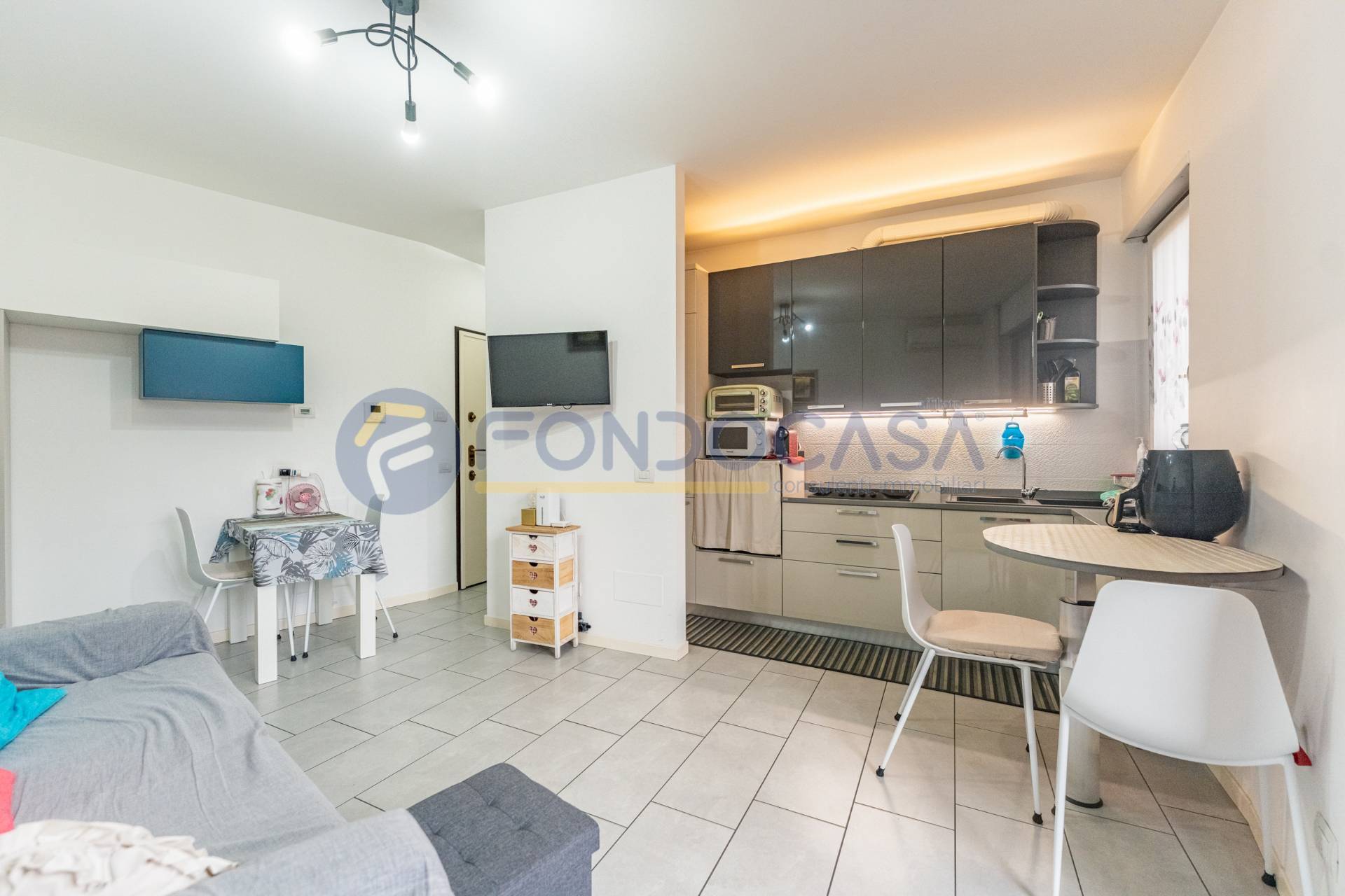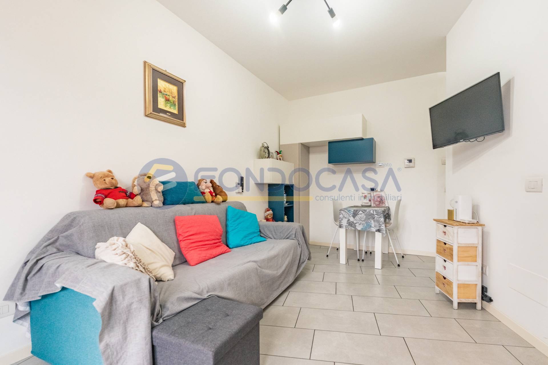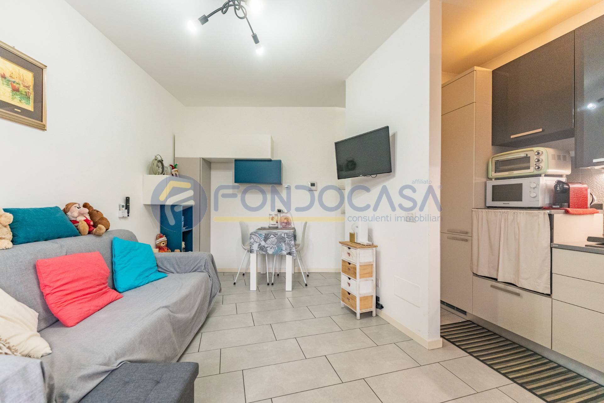 Condizioni: Palazzina moderna e ben tenuta del 2011. Composizione: Luminoso soggiorno con angolo cottura e accesso al primo balcone.