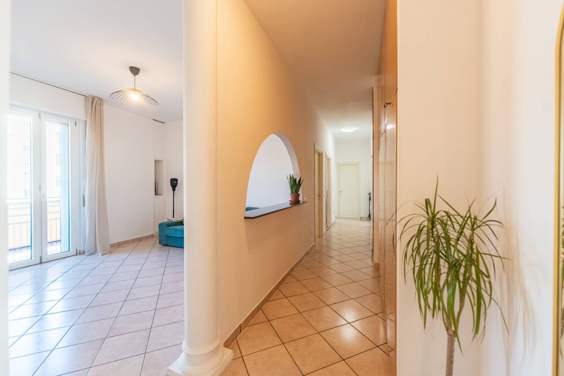 Lappartamento si distingue per una distribuzione degli spazi classica e razionale: Zona Giorno: accogliente soggiorno con accesso diretto al primo balcone, ideale per un momento di relax all'aria aperta.