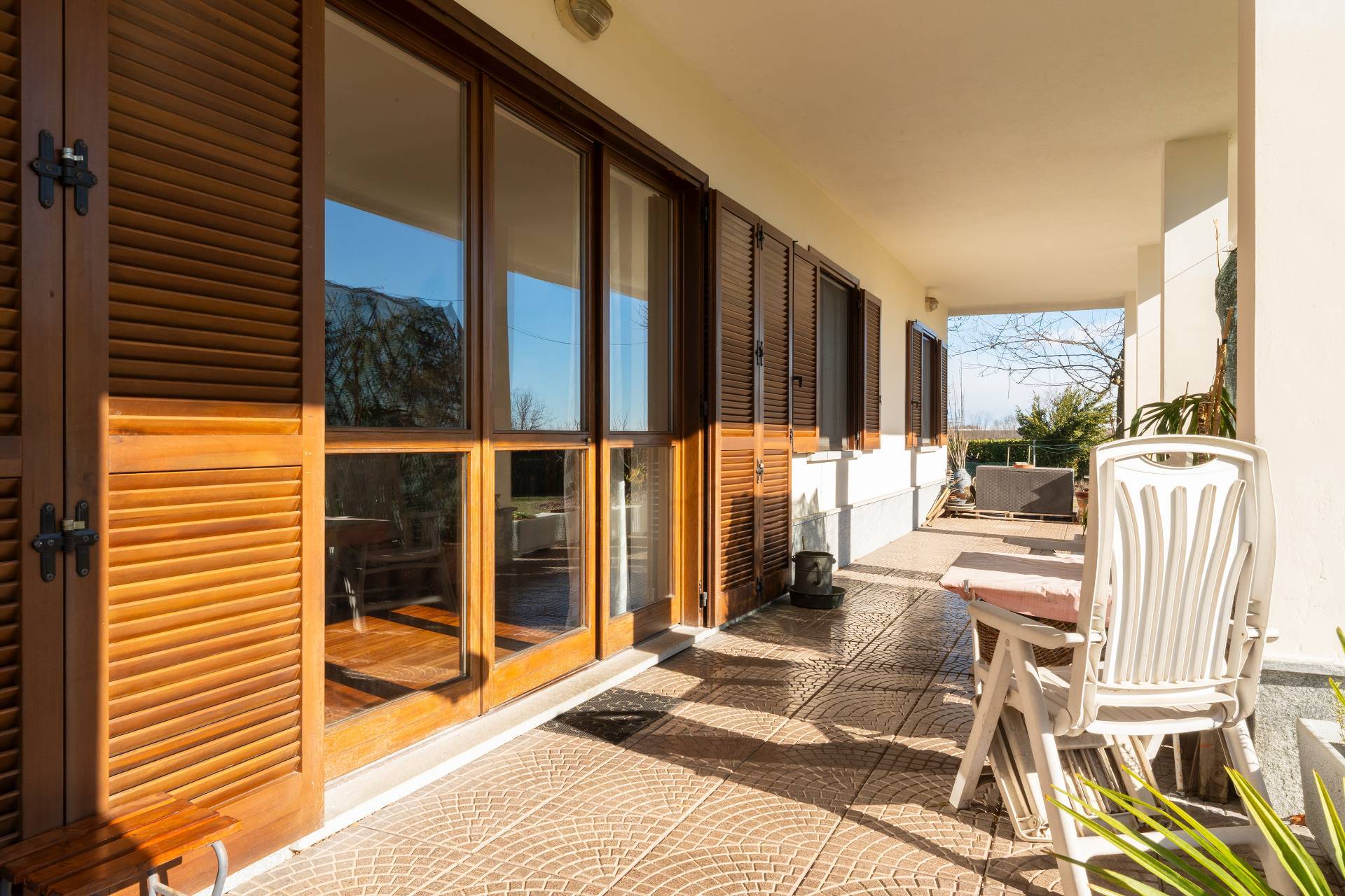 In una tranquilla zona residenziale immersa nel verde, a pochi minuti dal centro del paese e comoda a tutti i principali servizi, proponiamo in vendita grazioso e luminoso alloggio in splendida villa trifamiliare, ideale per chi desidera indipendenza, comfort e qualit della vita. Situato al piano terra, lappartamento accoglie con un ingresso living su ampio soggiorno, ambiente perfetto per momenti di relax e convivialit, collegato a uno spazioso porticato coperto affacciato sul giardino: uno spazio ideale per pranzi allaperto e serate estive in totale privacy.