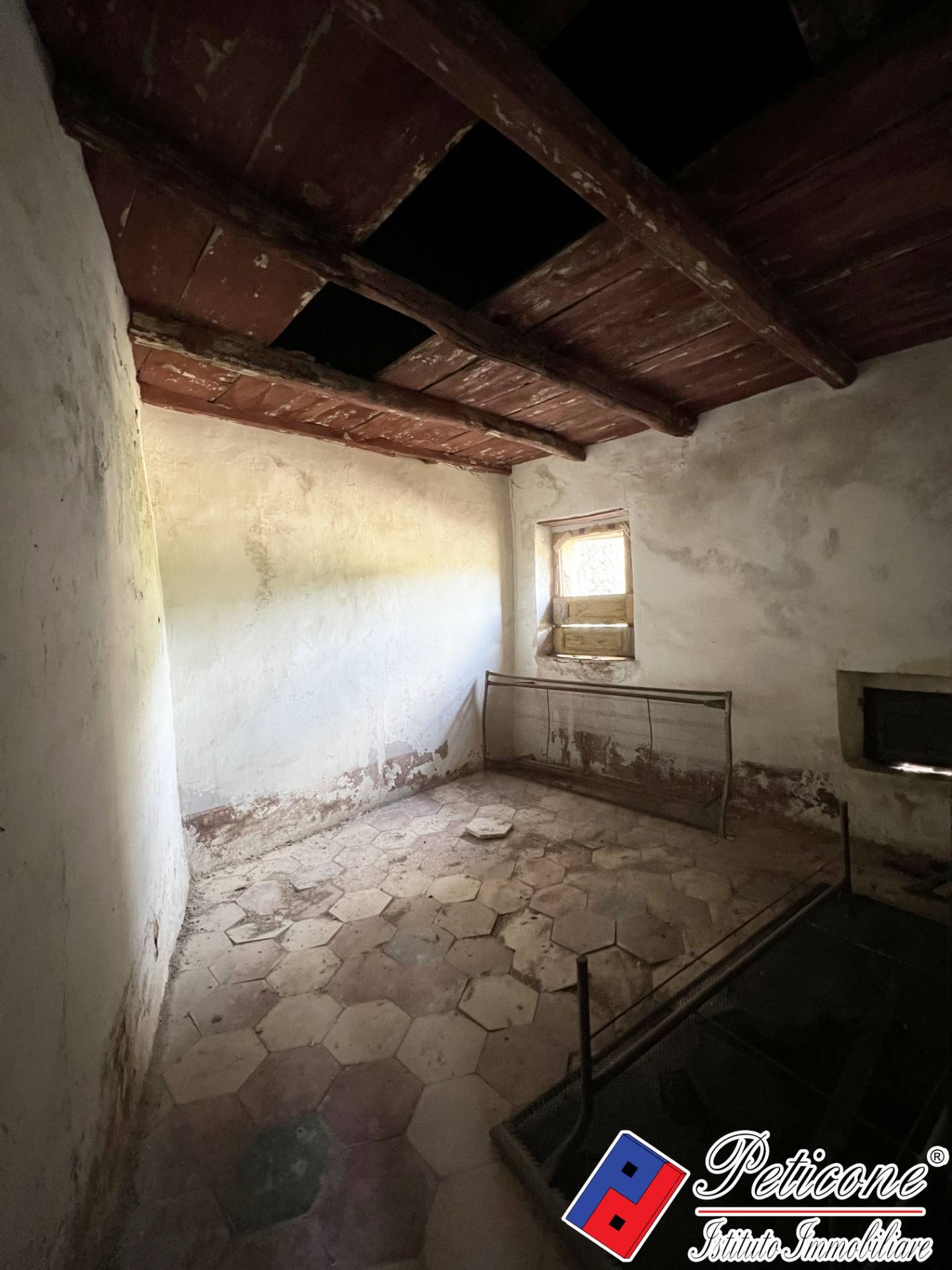 Mancano gli infissi interni /esterni e sprovvisto di impianto elettrico idraulico: PIANO TERRA: INGRESSO, con AMBIENTE ideale da utilizzare come CUCINA con CAMINO e possibilit di realizzare un BAGNO; PIANO PRIMO: DISIMPEGNO e un CAMERA; PIANO SECONDO: UNA CAMERA.