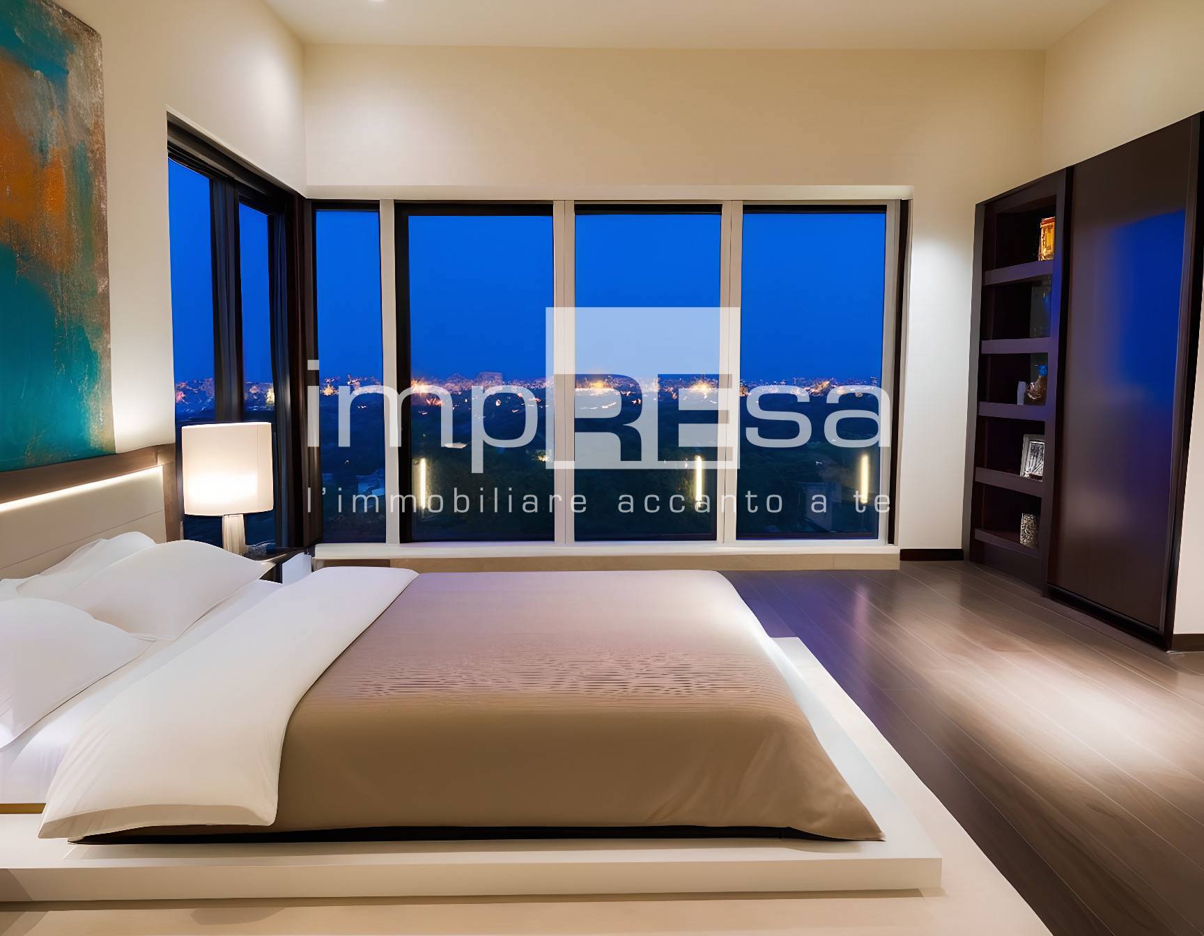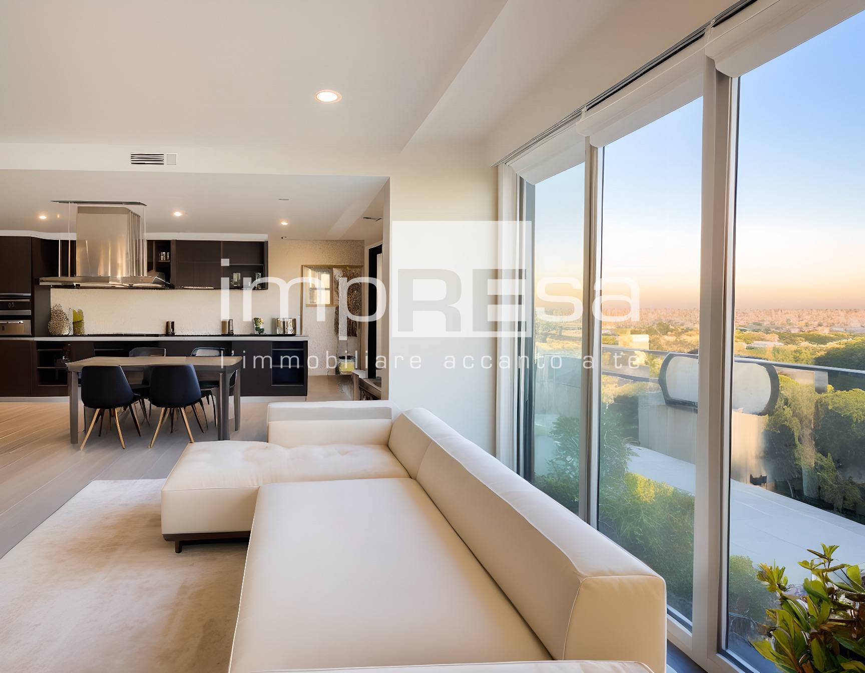 Entrando nellappartamento, ci troviamo subito nella zona giorno di 25,90 metri quadri, un open-space che include il soggiorno, la sala da pranzo e la cucina, dotata di superficie radiante a pavimento e condizionamento estivo a fan-coil. Dalla zona giorno si accede al terrazzo perimetrale di 46,60 metri quadri, ideale per pranzi allaperto o momenti di relax.