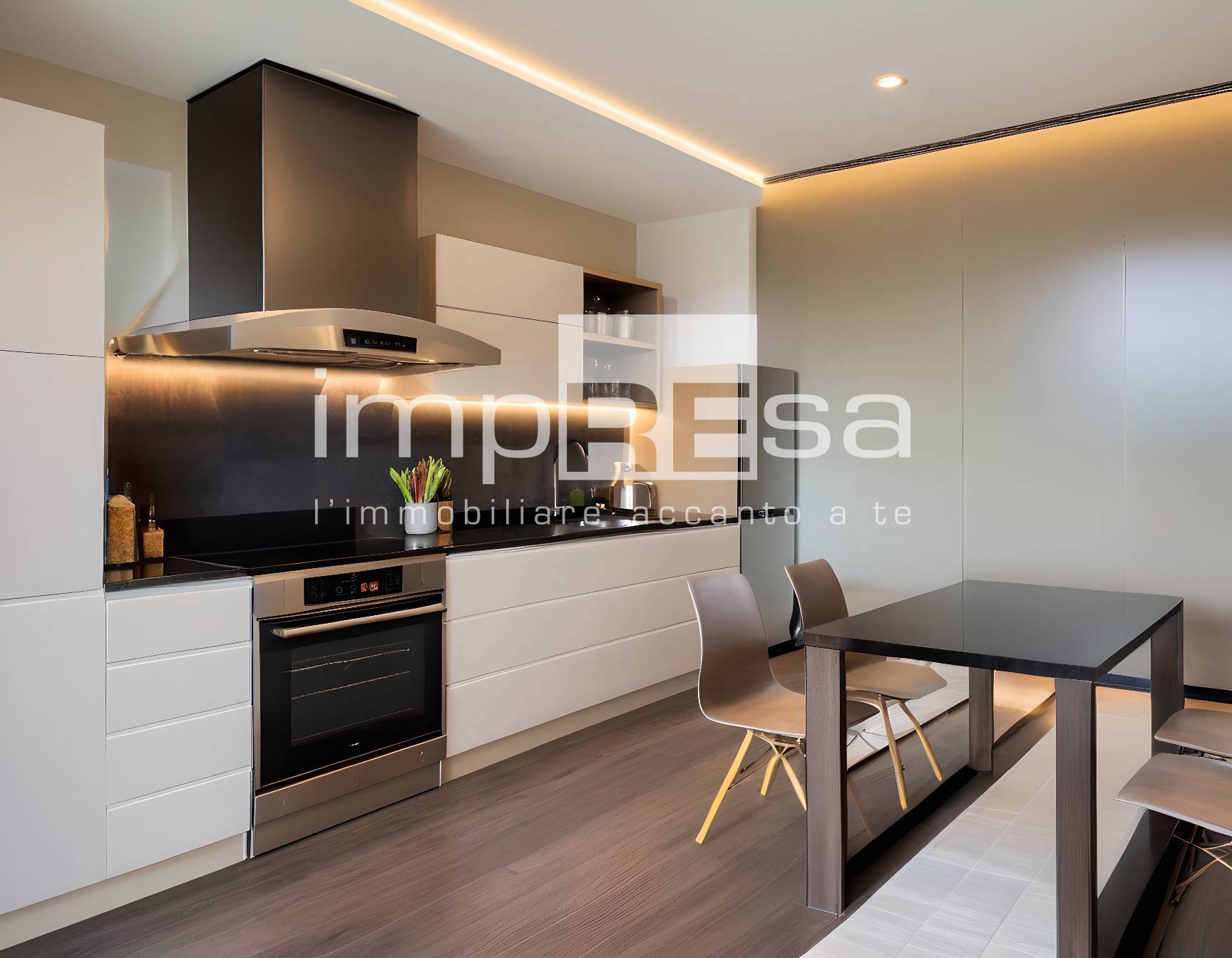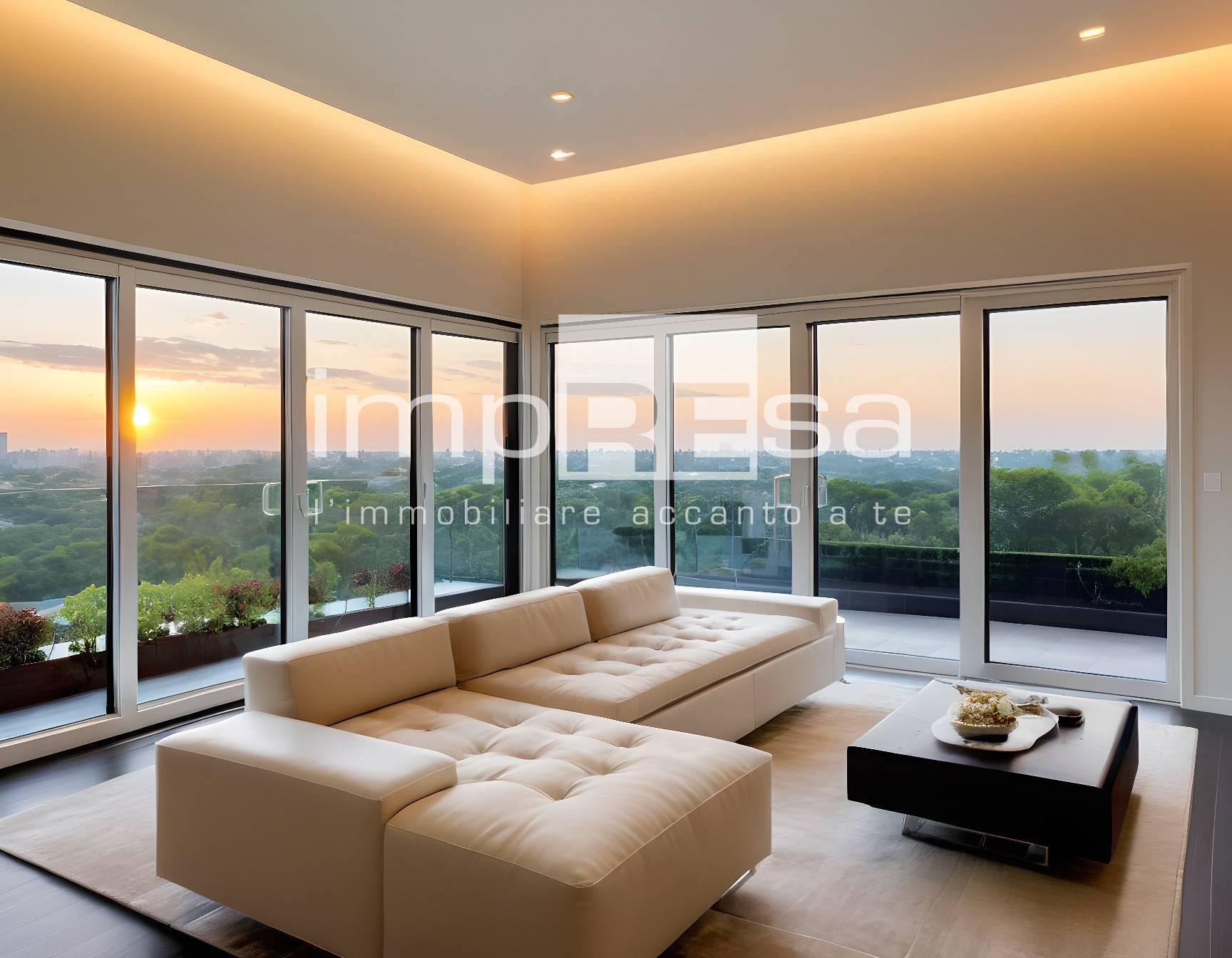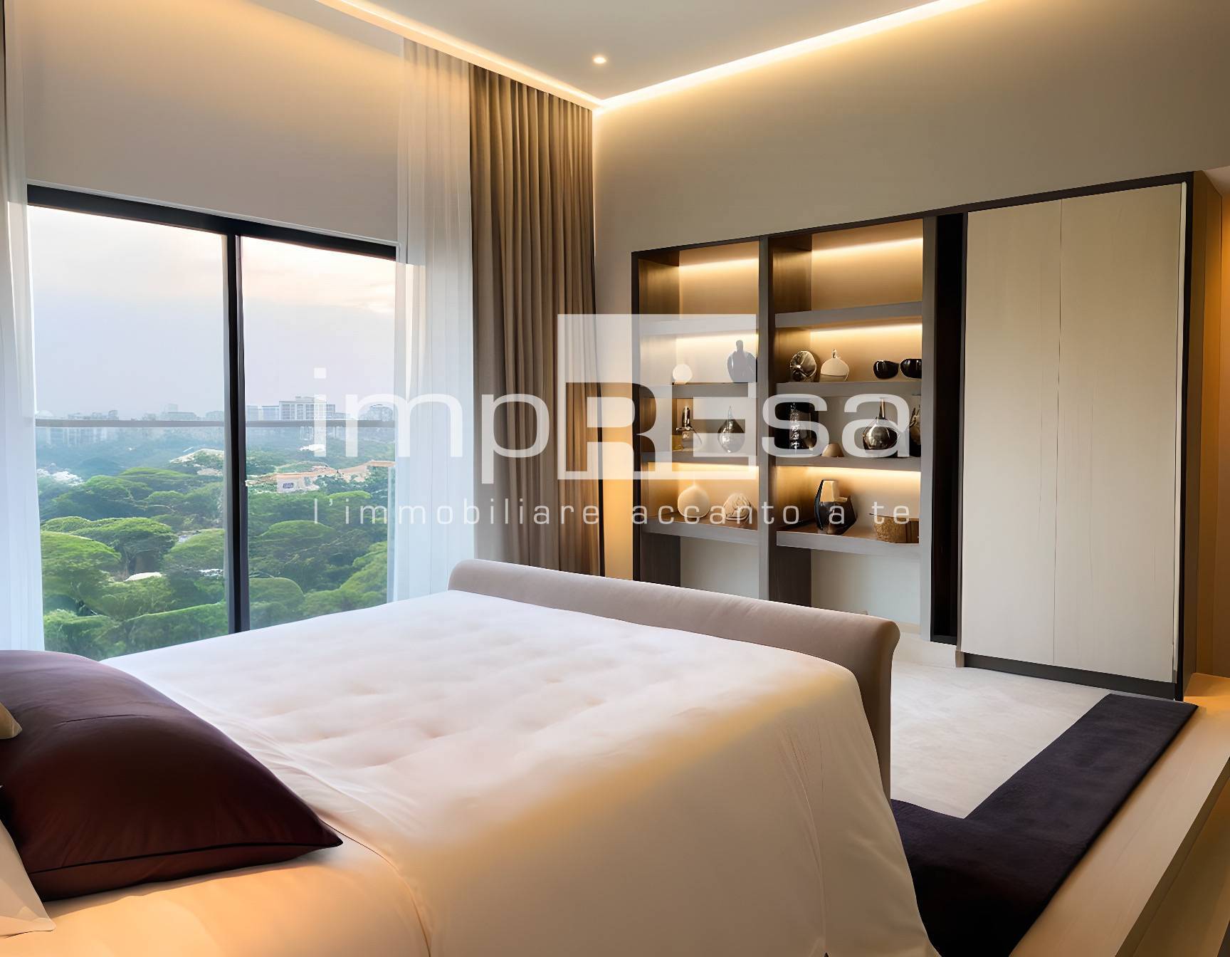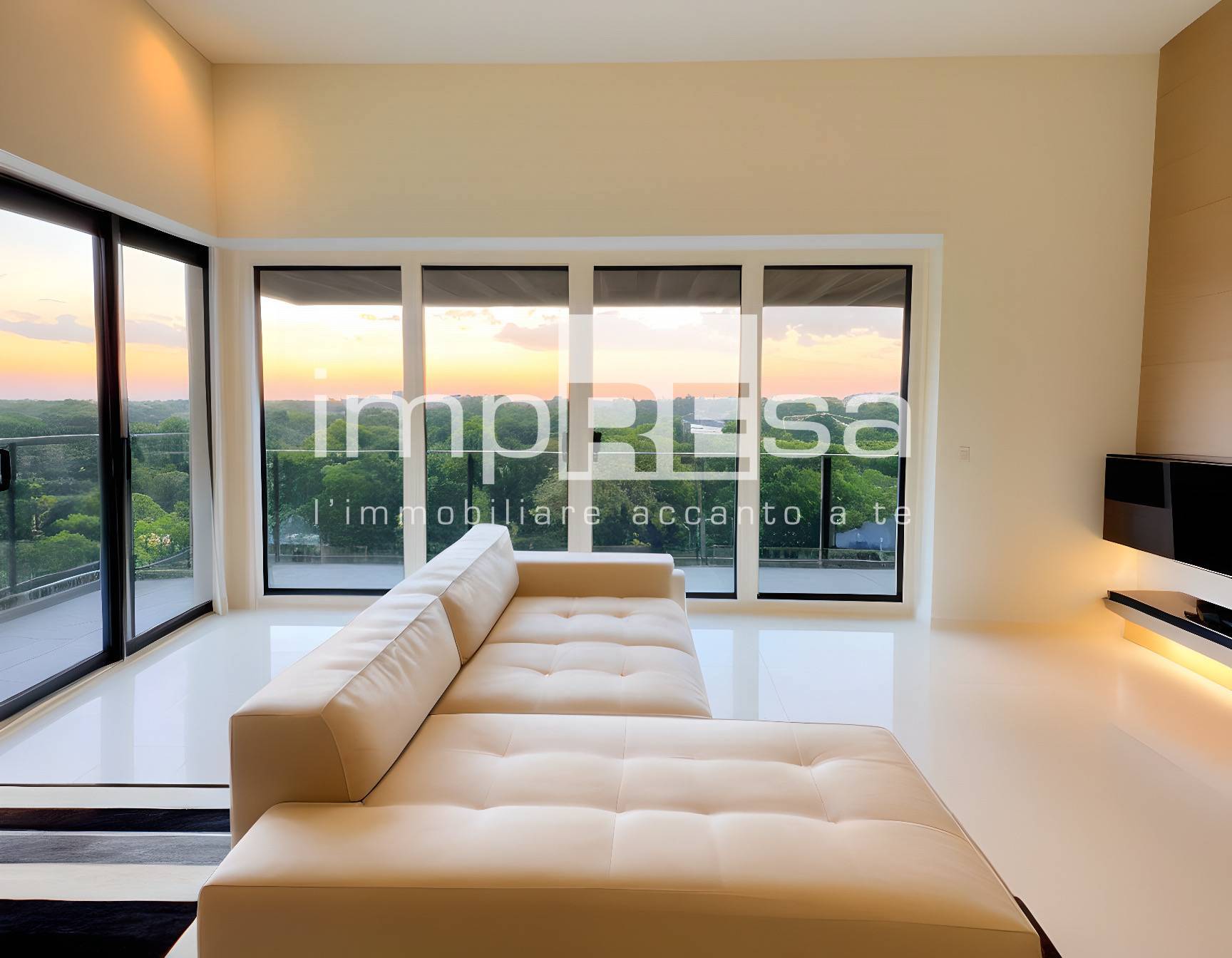 Entrando nellappartamento, ci troviamo subito nella zona giorno di 25,90 metri quadri, un open-space che include il soggiorno, la sala da pranzo e la cucina, dotata di superficie radiante a pavimento e condizionamento estivo a fan-coil. Dalla zona giorno si accede al terrazzo perimetrale di 46,60 metri quadri, ideale per pranzi allaperto o momenti di relax.