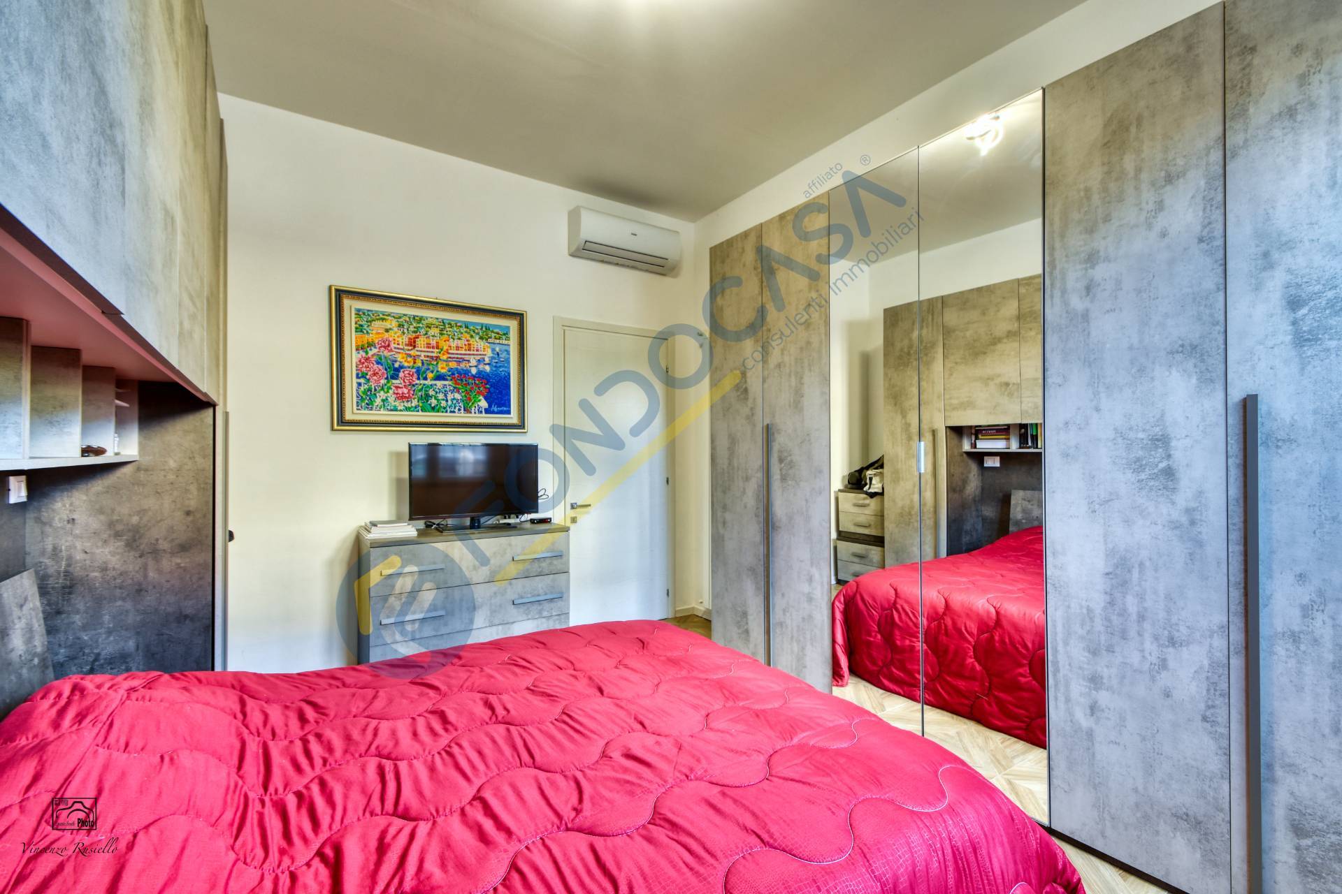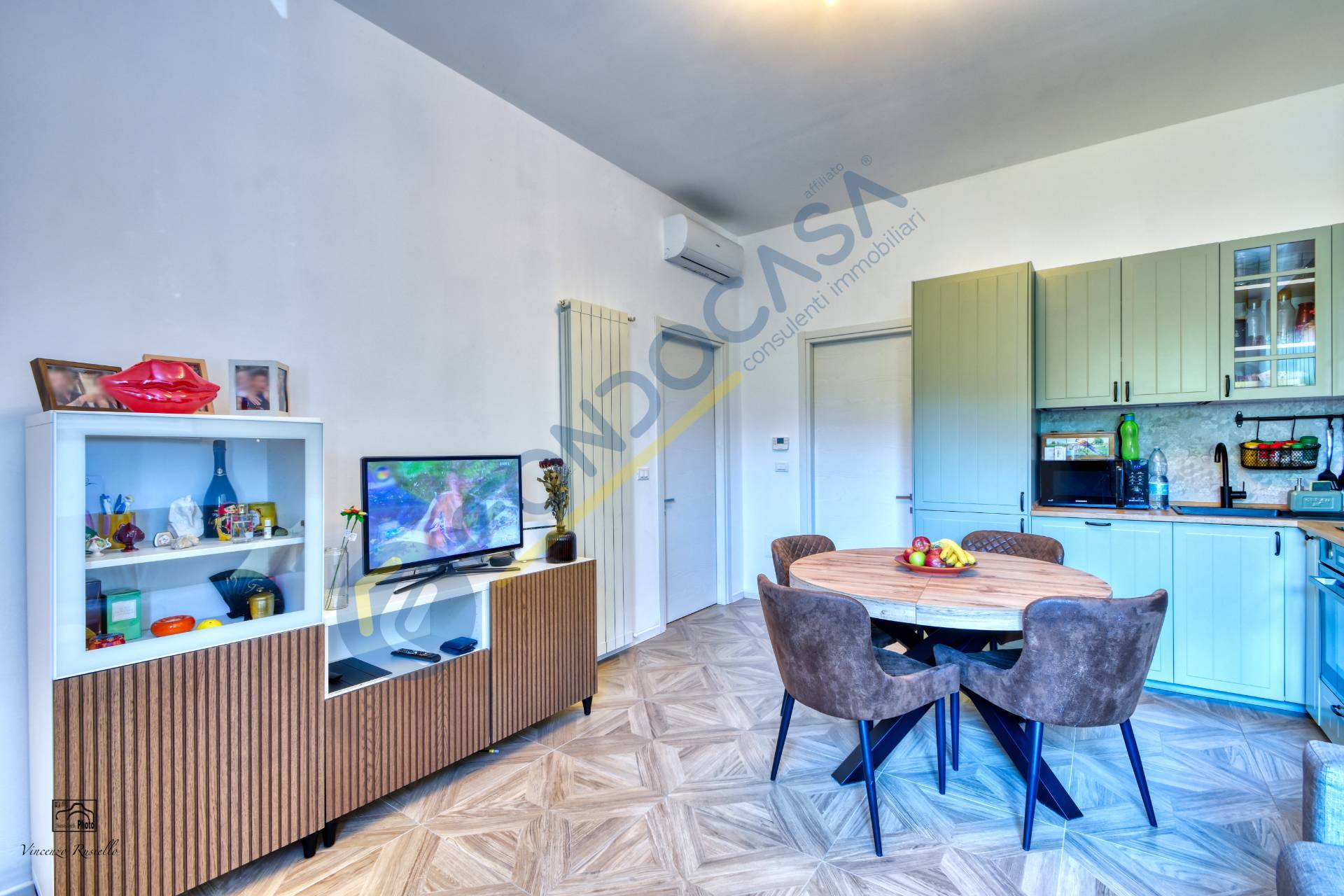 Internamente l'appartamento si compone di soggiorno con cucina a vista, camera da letto, disimpegno bagno, bagno finestrato provvisto di doccia walk-in. Le condizioni dell'immobile sono ottime, data la recente ristrutturazione (sono stati rifatti anche gli impianti): la pavimentazione in gres effetto legno in tutta la soluzione, gli infissi sono in pvc con doppio vetro, le tapparelle sono motorizzate e sono presenti le inferriate su tutti gli infissi, la porta d'ingresso blindata, il riscaldamento autonomo! Inoltre tutte le luci, le prese della corrente e gli elettrodomestici sono collegati al sistema di domotica.