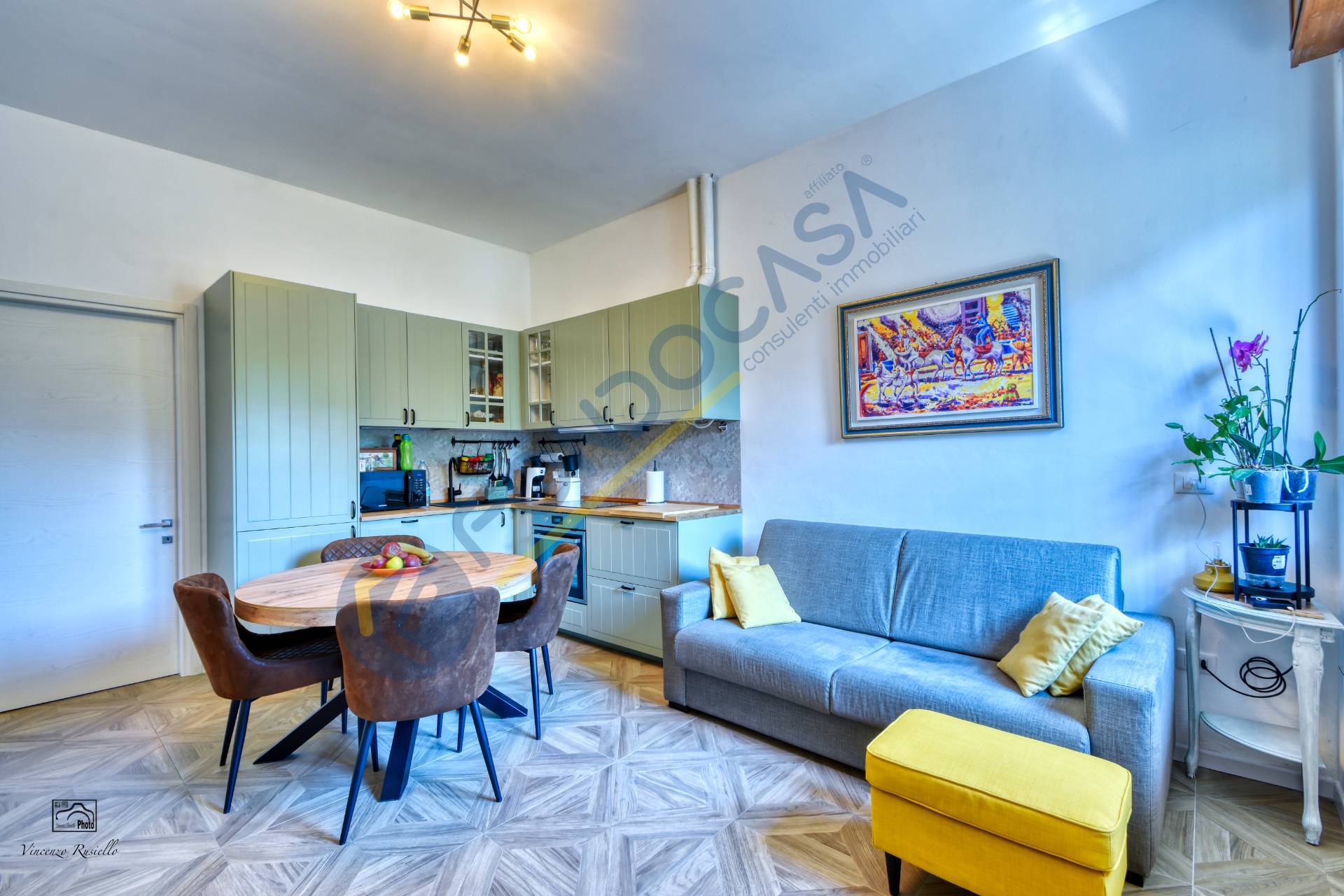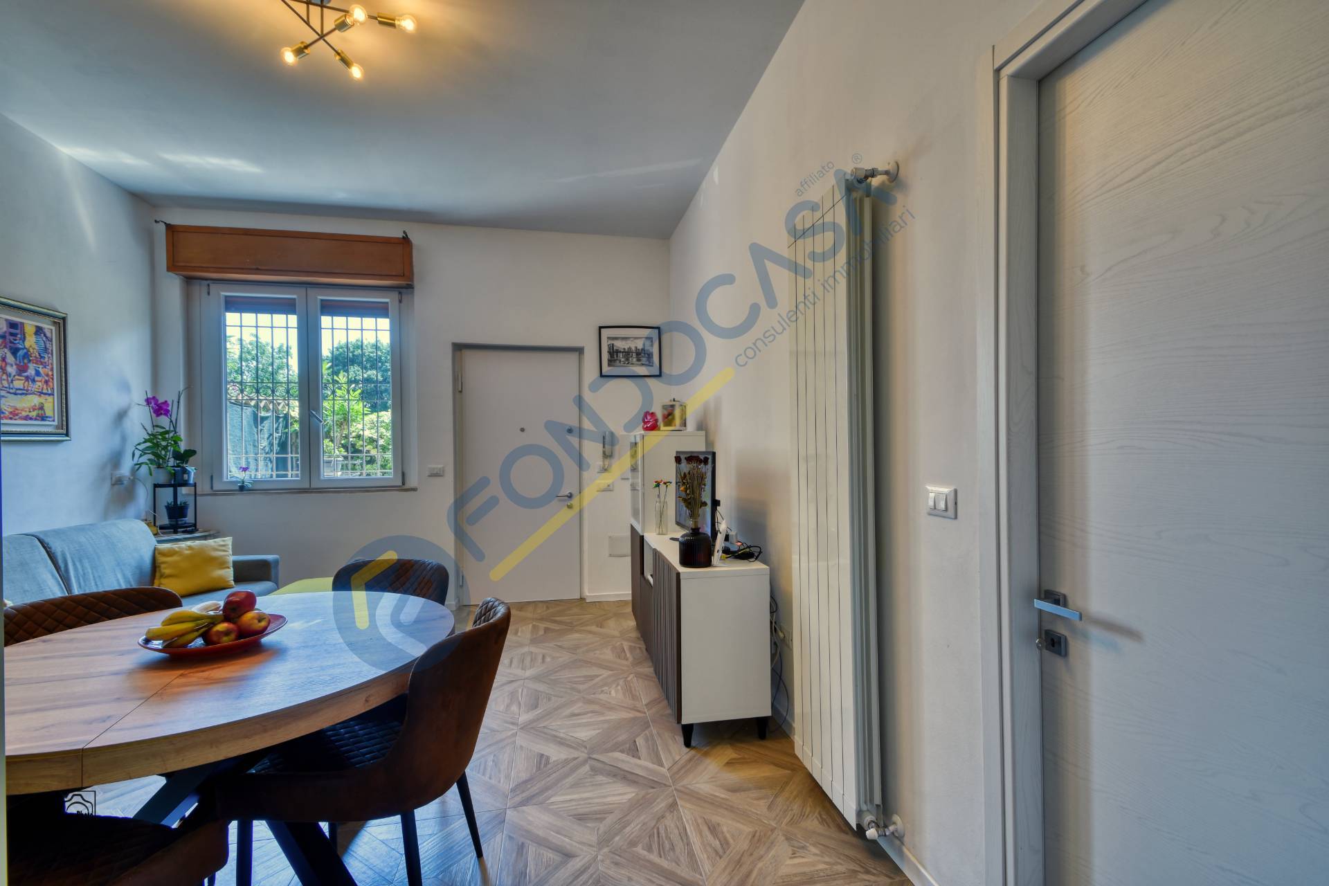Internamente l'appartamento si compone di soggiorno con cucina a vista, camera da letto, disimpegno bagno, bagno finestrato provvisto di doccia walk-in. Le condizioni dell'immobile sono ottime, data la recente ristrutturazione (sono stati rifatti anche gli impianti): la pavimentazione in gres effetto legno in tutta la soluzione, gli infissi sono in pvc con doppio vetro, le tapparelle sono motorizzate e sono presenti le inferriate su tutti gli infissi, la porta d'ingresso blindata, il riscaldamento autonomo! Inoltre tutte le luci, le prese della corrente e gli elettrodomestici sono collegati al sistema di domotica.