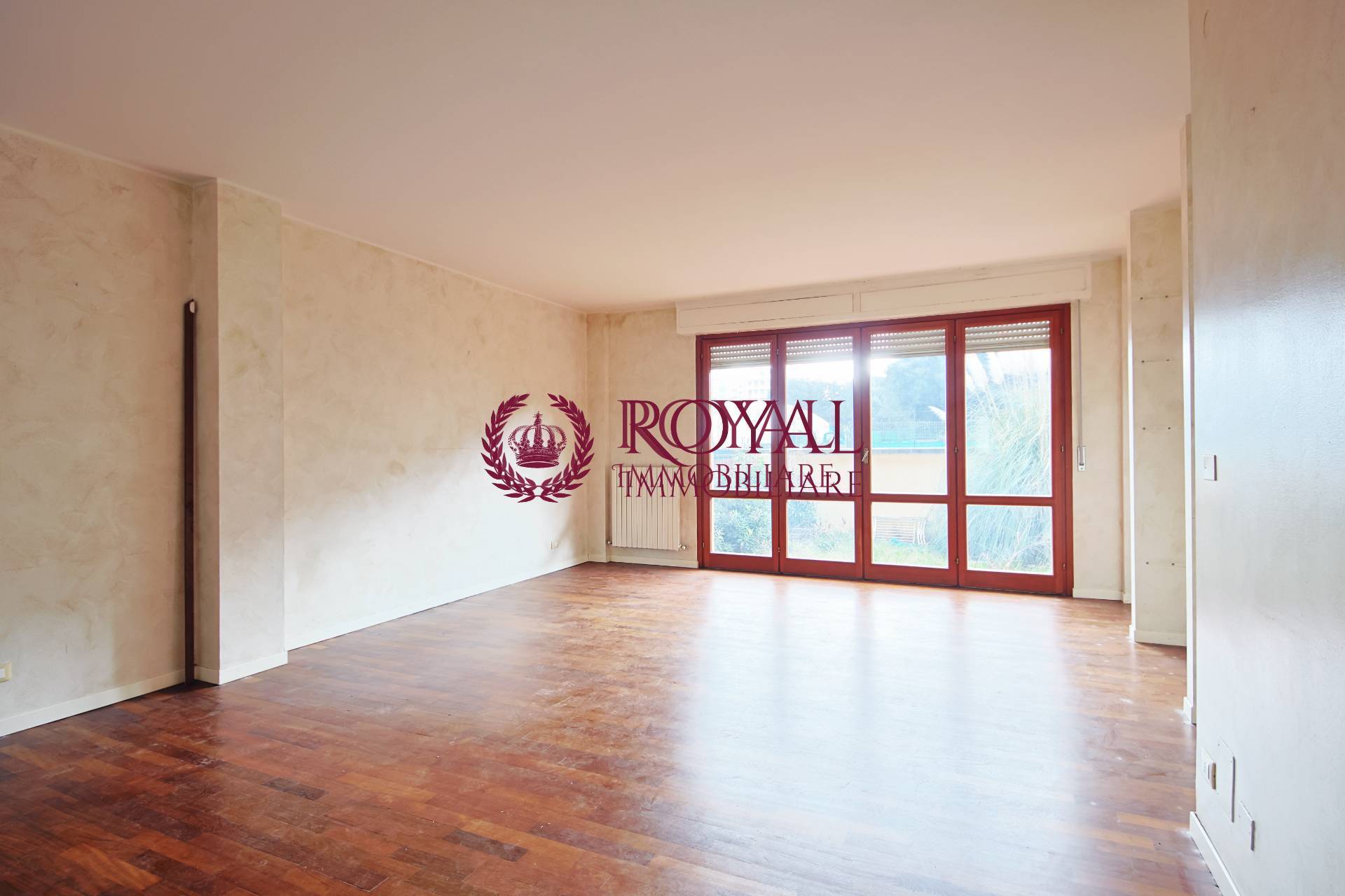 Attualmente libero e pronto per il rogito, l'appartamento composto da doppio ingresso, sia dal giardino che dal condominio, salone doppio con accesso alla parte esterna, disimpegno, cucina abitabile, ripostiglio con caldaia a condensazione, studio, tre camere matrimoniali, due bagni finestrati giardino privato di circa 160 metri con accesso auto direttamente alla propriet.