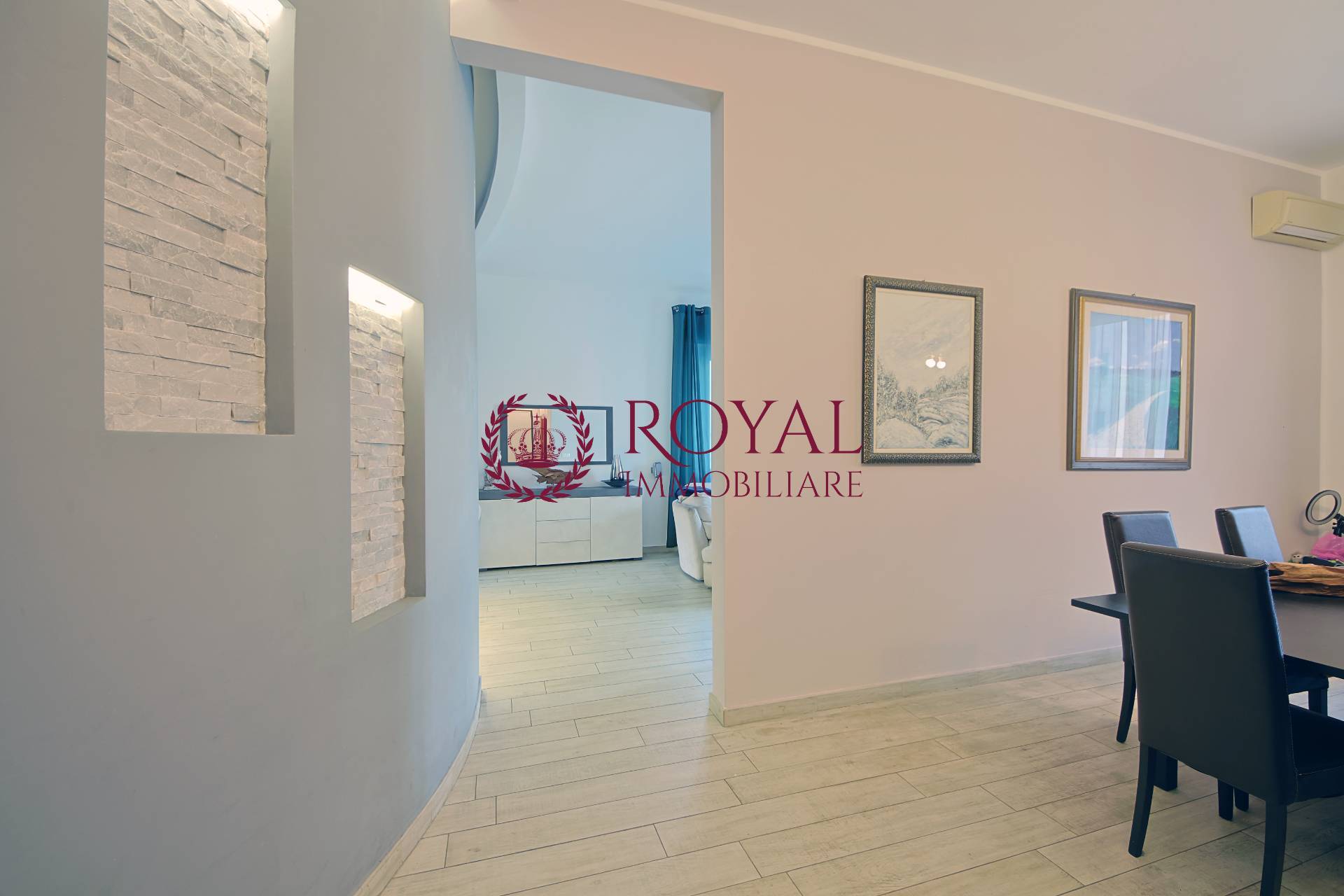 Con una superficie interna di 180 mq circa, composto da: ingresso in ampio open-space suddiviso tra soggiorno, salone con balcone e lato-cottura, corridoio zona notte dove troviamo tre camere matrimoniali di cui una leggermente pi piccola adibita a cabina armadi ed una con veranda, doppi servizi finestrati uno dei quali con vasca idromassaggio, termo autonomo, posto auto di propriet nella corte condominiale.