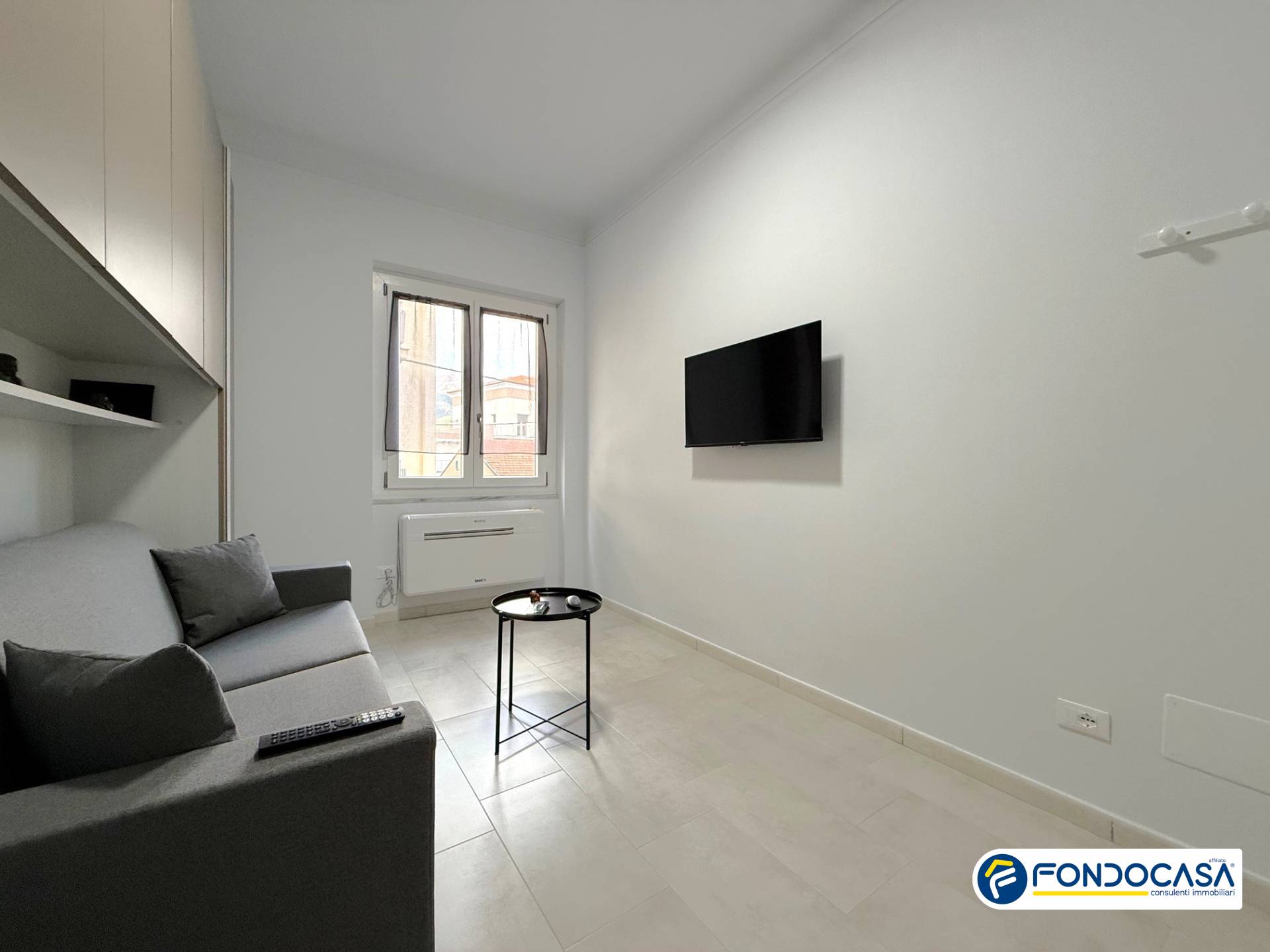 L'alloggio composto da ingresso, disimpegno, cucina abitabile, soggiorno con divano letto ed armadio a ponte, camera matrimoniale, ripostiglio e bagno finestrato con doccia.