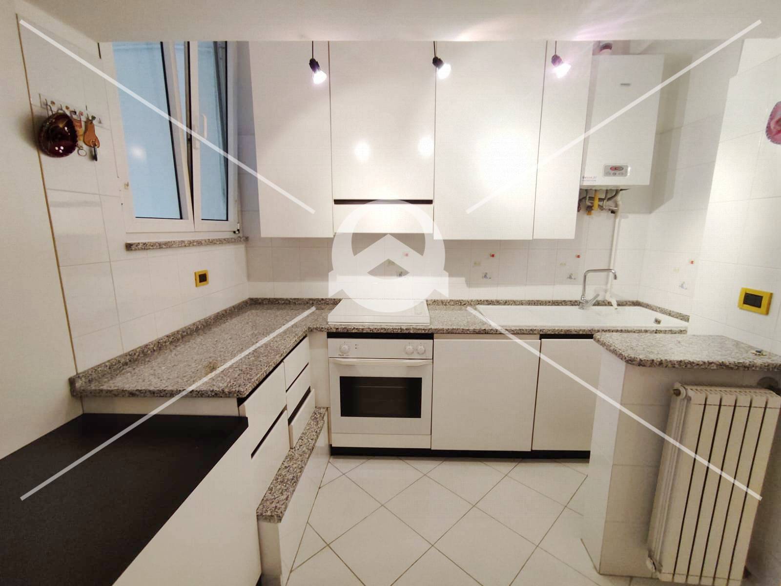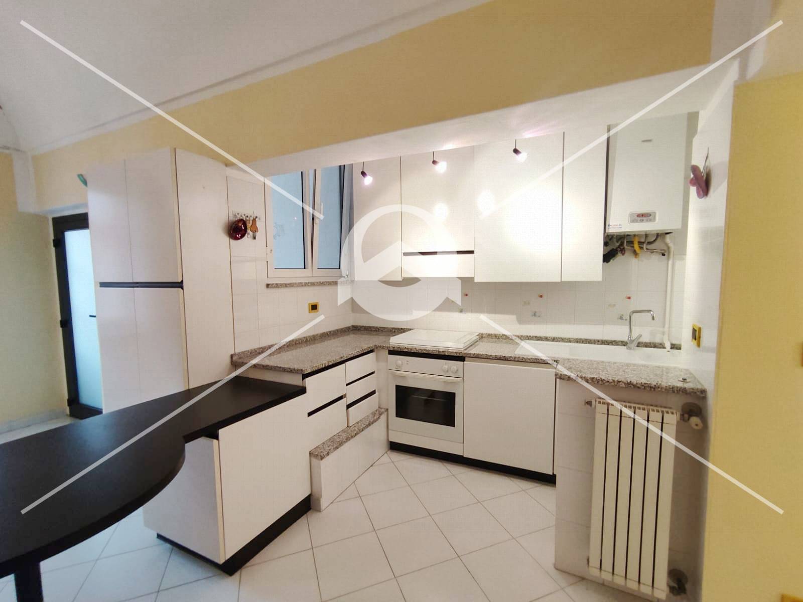 La cucina, moderna e funzionale, gi attrezzata, si integra perfettamente con la zona giorno, rendendo lambiente pratico e contemporaneo.