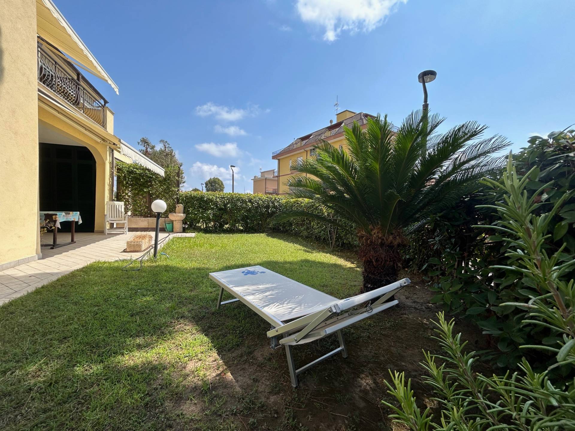 Dal soggiorno si accede direttamente al porticato, perfetto per godersi pranzi e cene all'aperto e per rilassarsi al sole. Il giardino privato, curato e ben tenuto, offre uno spazio verde comodo e riservato.