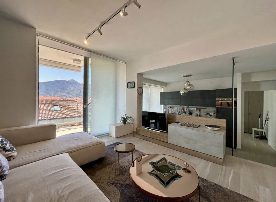 L'alloggio si compone di tre locali, di cui uno spazioso soggiorno con cucina a vista con accesso ad un ampio terrazzo che offre una piacevole vista sulla zona circostante, due camere da letto e un bagno finestrato.