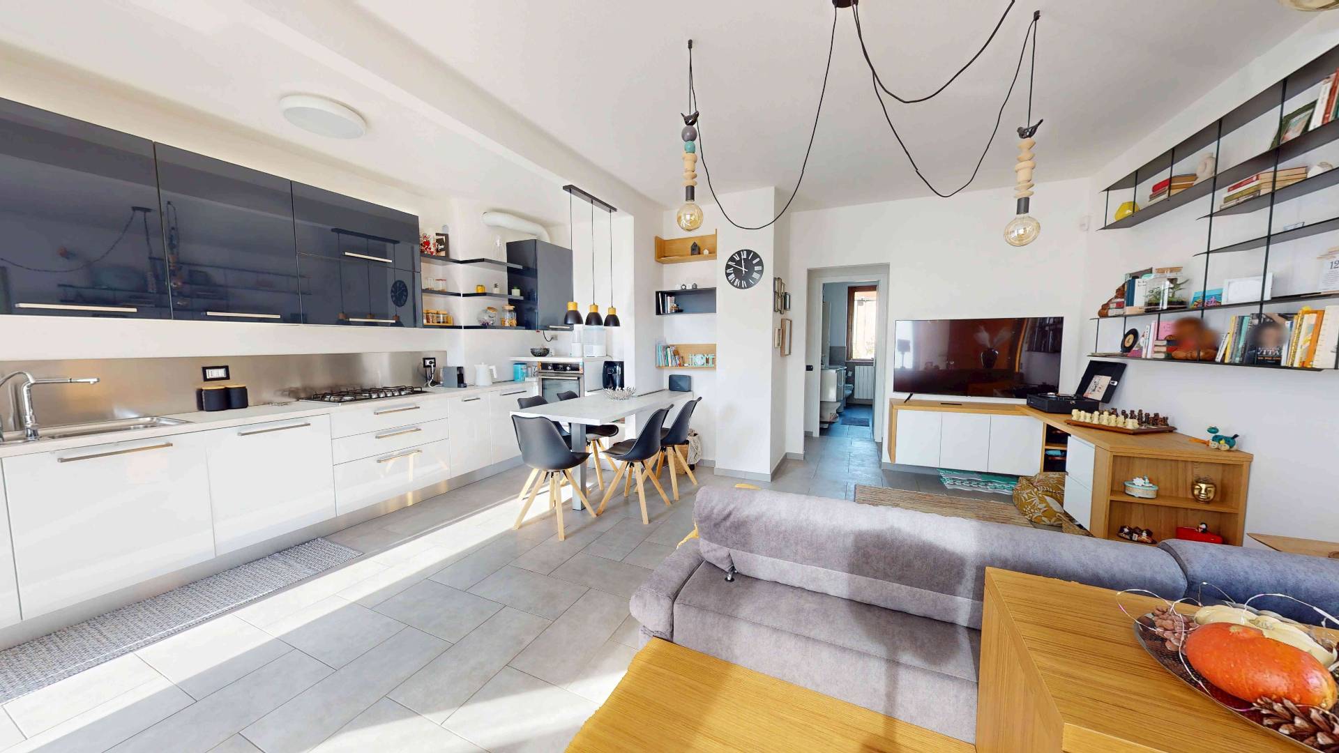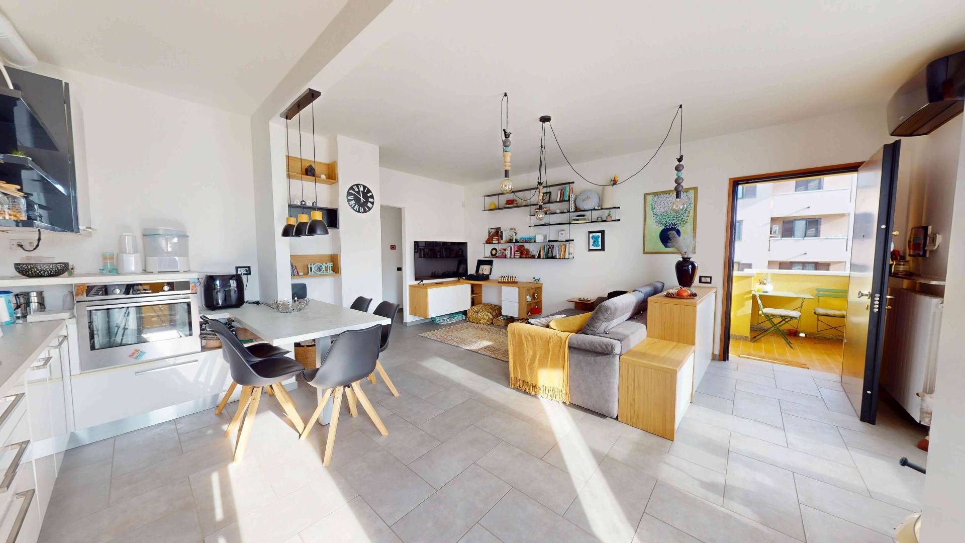 La casa libera su TRE LATI e gode di una favorevole esposizione al sole che rende il LIVING sempre LUMINOSISSIMO '?. La metratura di circa 82 mq catastali suddivide con intelligenza e ottimizzazione tutto l'appartamento donando vivibilit e ariosit a tutti i locali: L'entrata dal terrazzino d'ingresso ci accoglie nel CONFORTEVOLE SOGGIORNO con CUCINA A VISTA dotato di doppia fruibilit alla BALCONATA arricchita da VISUALE DI AMPIO RESPIRO esposta a sud; il disimpegno ritaglia poi la riservata zona notte con armonioso affaccio sul verde circostante dove troviamo le DUE INTROVABILI CAMERE MATRIMONIALI, entrambe con balcone privato, e l'ELEGANTE BAGNO completo di vasca e doccia.