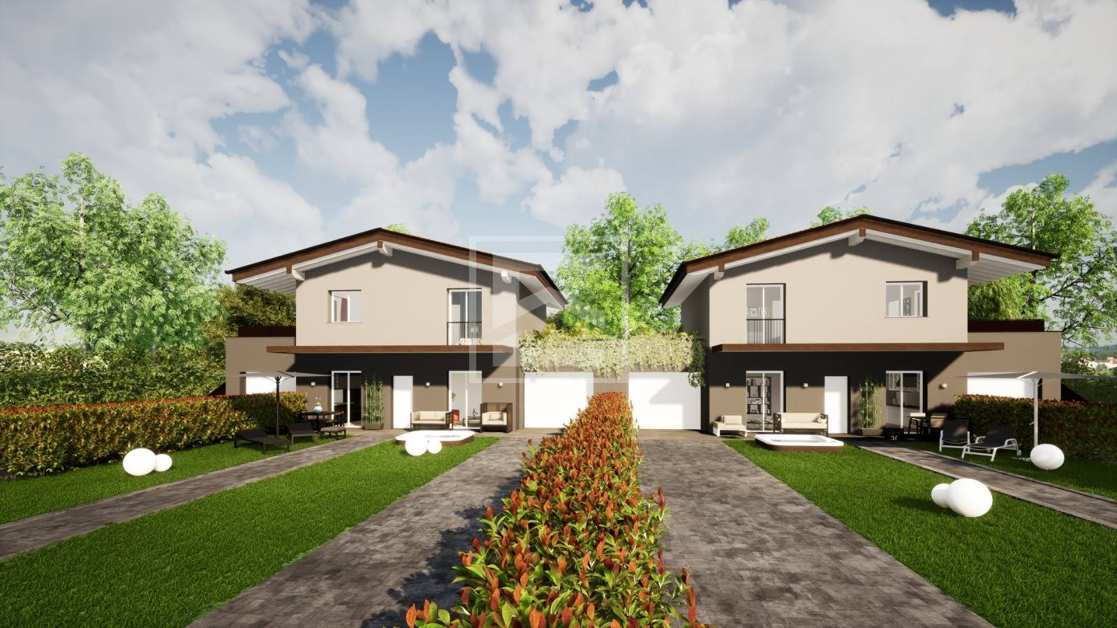 Piccolo complesso di soli 2 appartamenti (1 al piano terra e 1 al piano primo) entrambi con giardino privato di circa 200 mq e con ingressi completamente indipendenti.