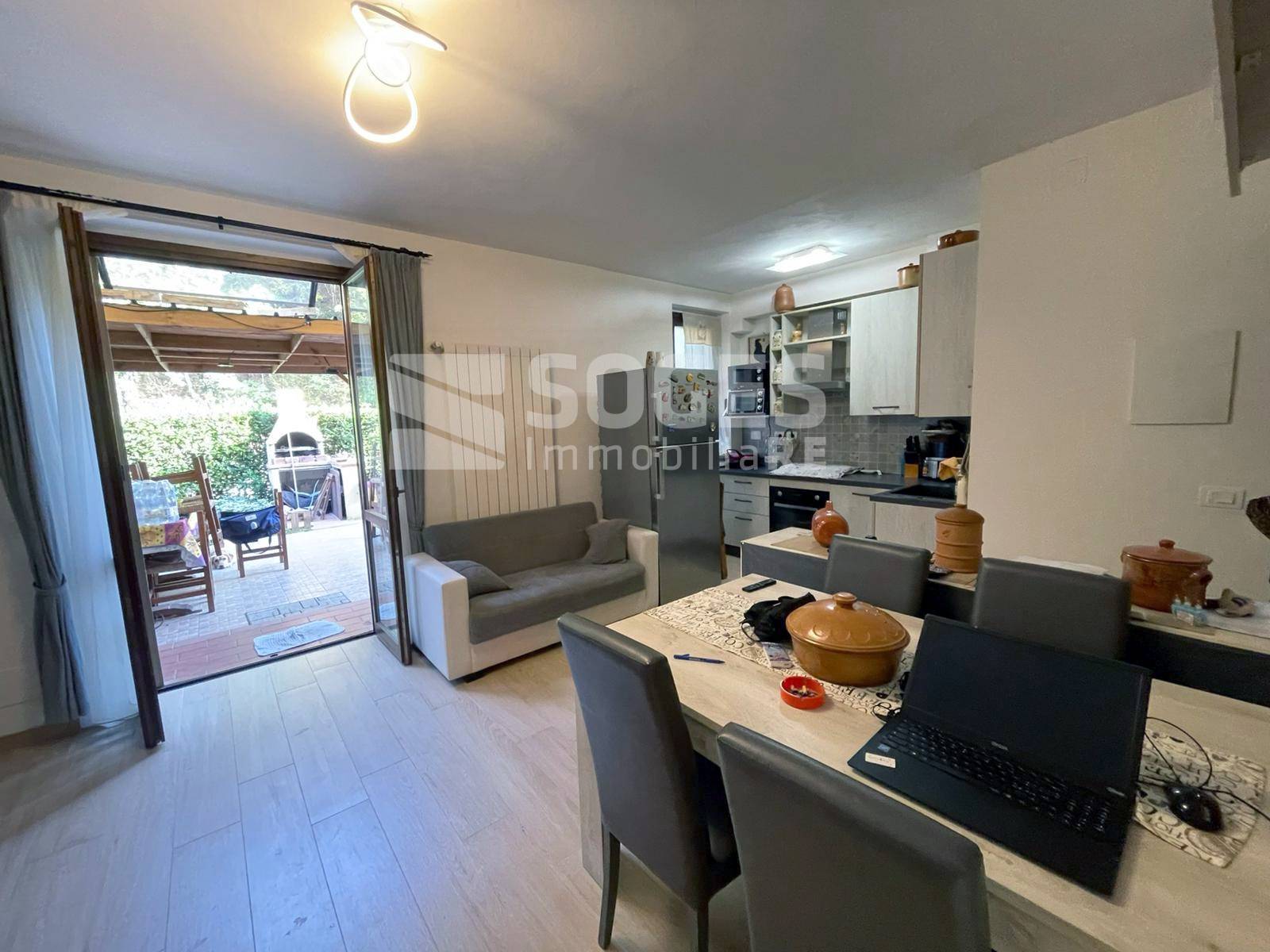 All'inizio del paese di Londa in un contesto di piccole palazzine a schiera, piacevole appartamento posto al piano terra con doppio ingresso indipendente e doppio giardino privato.