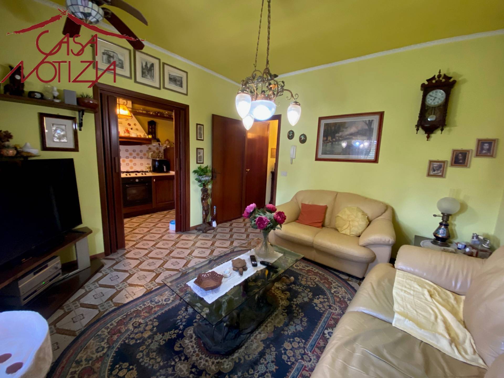 L'appartamento mantiene il gusto tipico degli anni 70, ed composto da ingresso, soggiorno, angolo cottura, disimpegno, camera matrimoniale, camera singola, ripostiglio e bagno con doccia e accesso al balcone.