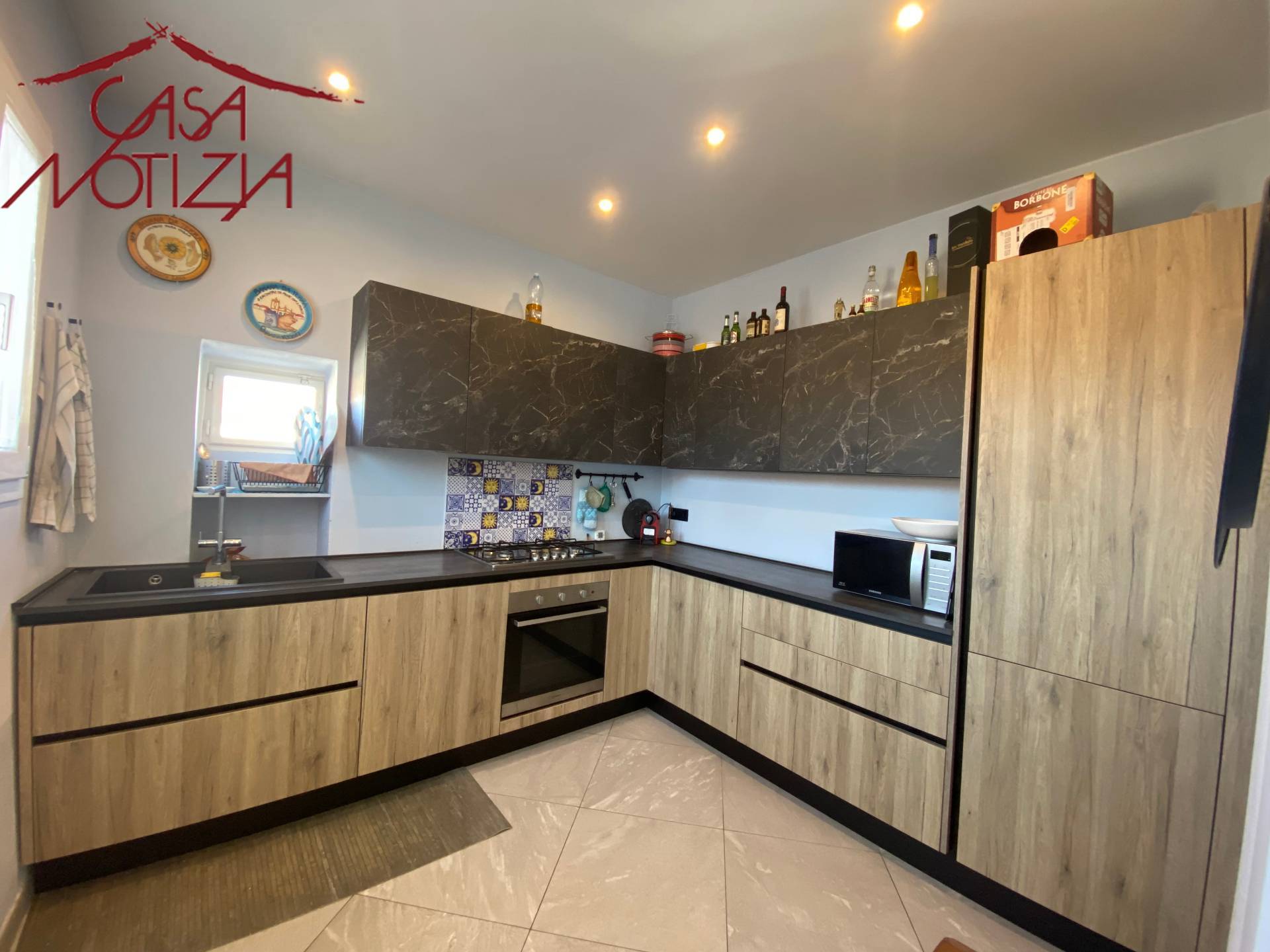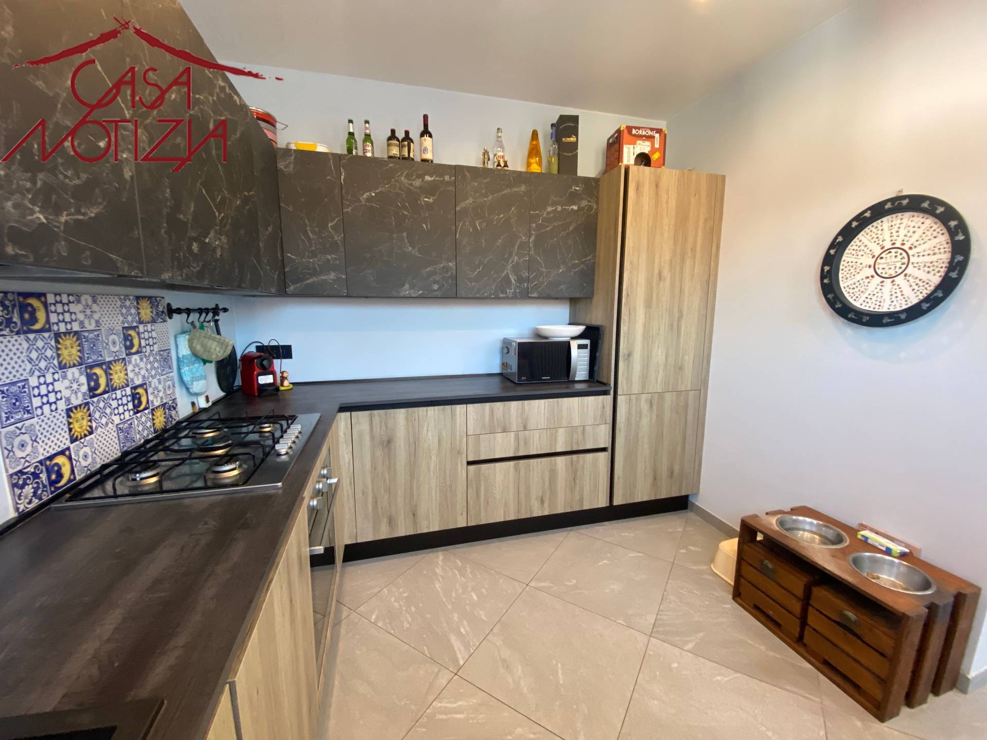 Proseguendo troviamo la cucina con dispensa a muro. La zona notte caratterizzata da una camera matrimoniale con bagno padronale, una camera doppia e la cabina armadi molto comoda, oltre al bagno principale finestrato con doccia.