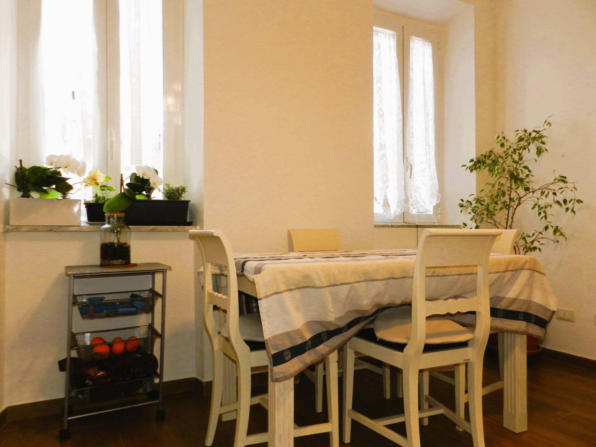 Le ampie finestre offrono spazi ben illuminati da una luce naturale che pervade alle varie ore giorno l'intero appartamento.
