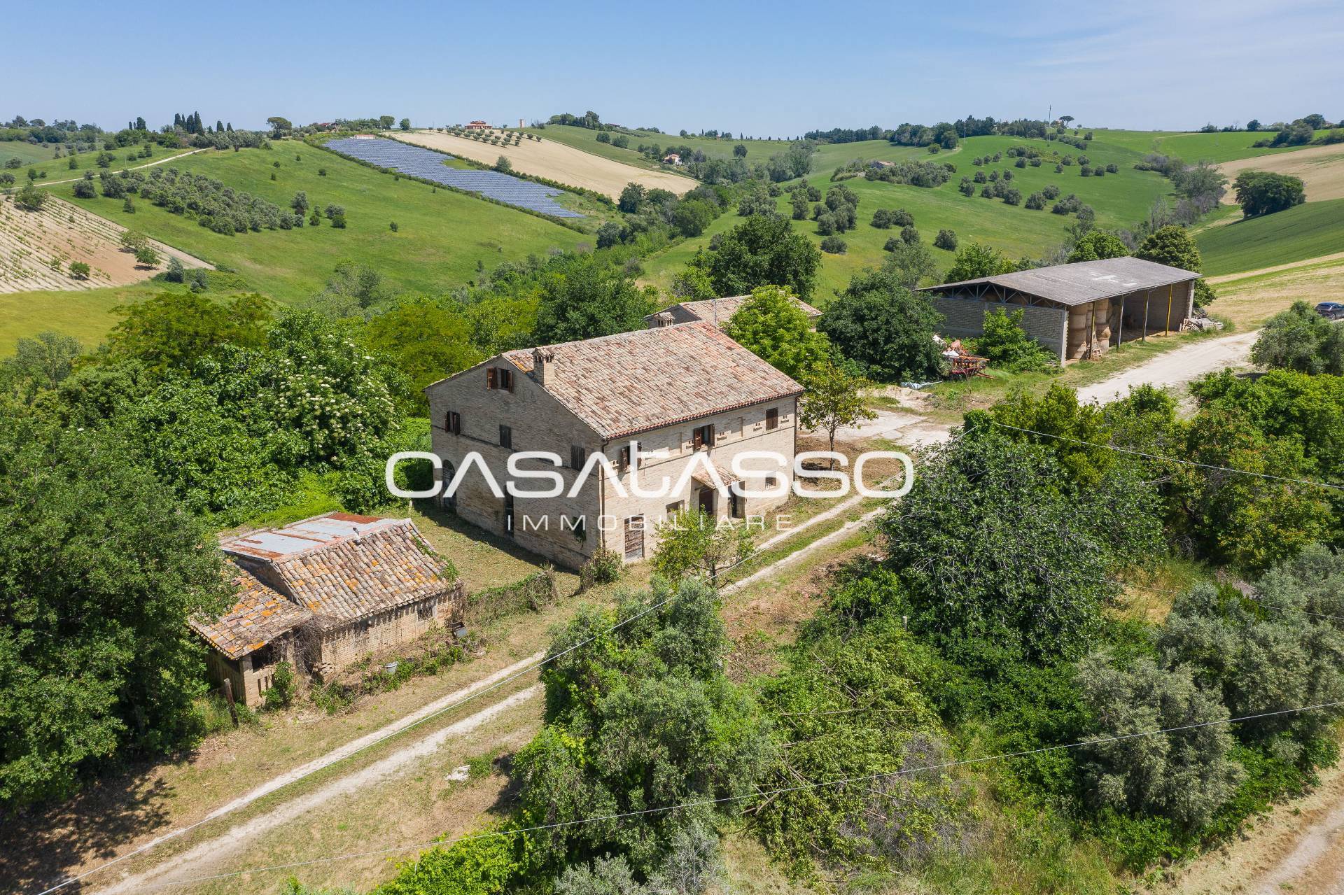 A 5,00 Km circa da Macerata vendesi CASALE con vari ACCESSORI e TERRENO AGRICOLO della superficie di ha 21.99.80 collinare e di facile accesso dalla strada provinciale.