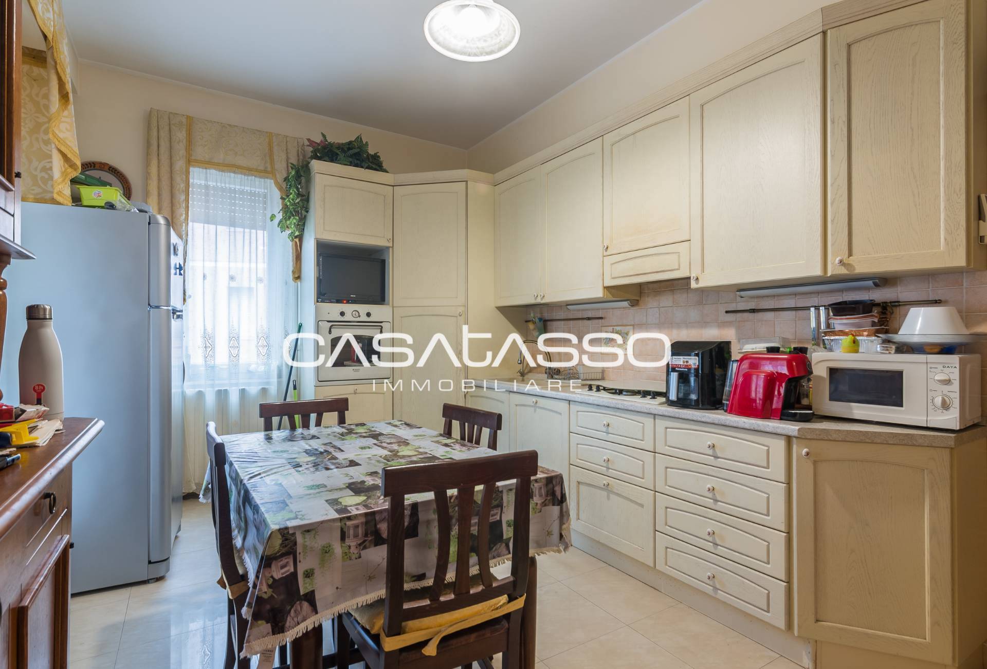 La cucina abitabile, arredata con gusto e dotata di tutti gli elettrodomestici necessari, perfetta per preparare pranzi e cene da condividere con familiari e amici.