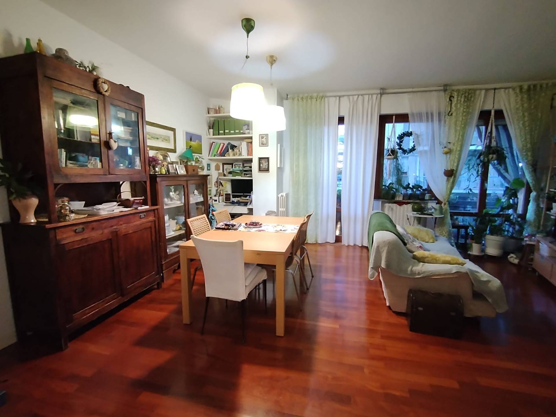 Pavimentazione in parquet sia nel salone che nella zona notte.