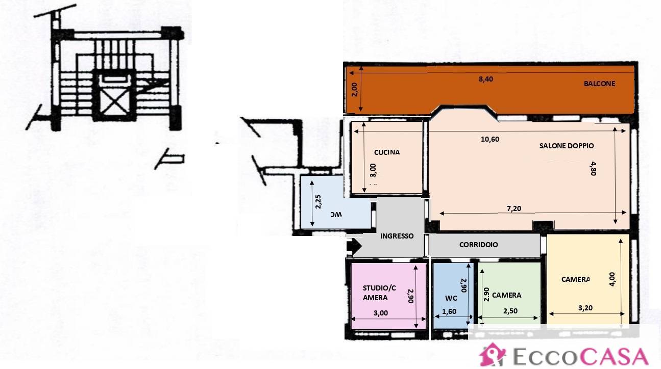 Ubicato al piano quarto servito da ascensore, l'appartamento composto da ingresso, salone doppio con camino, cucina separata dal salone da doppia porta a scrigno, 3 camere, 2 bagni, posto auto di propriet e cantinola.