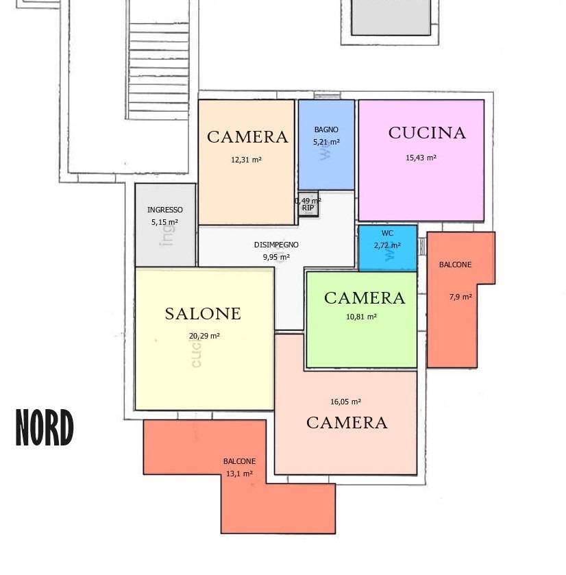 Tutti gli ambienti sono serviti da balconi spaziosi ed attrezzabili mentre l'esposizione con vista verso sud-ovest garantisce molta luminosit durante tutto il giorno.
