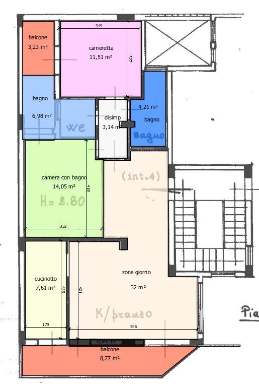 L' appartamento composto da 3 locali, di cui 2 camere da letto, salone con cucina e 2 bagni, di cui uno in camera; Gli ambienti sono ampi e luminosi, grazie anche all'esposizione sud/est che garantisce una buona illuminazione naturale durante tutto il giorno.