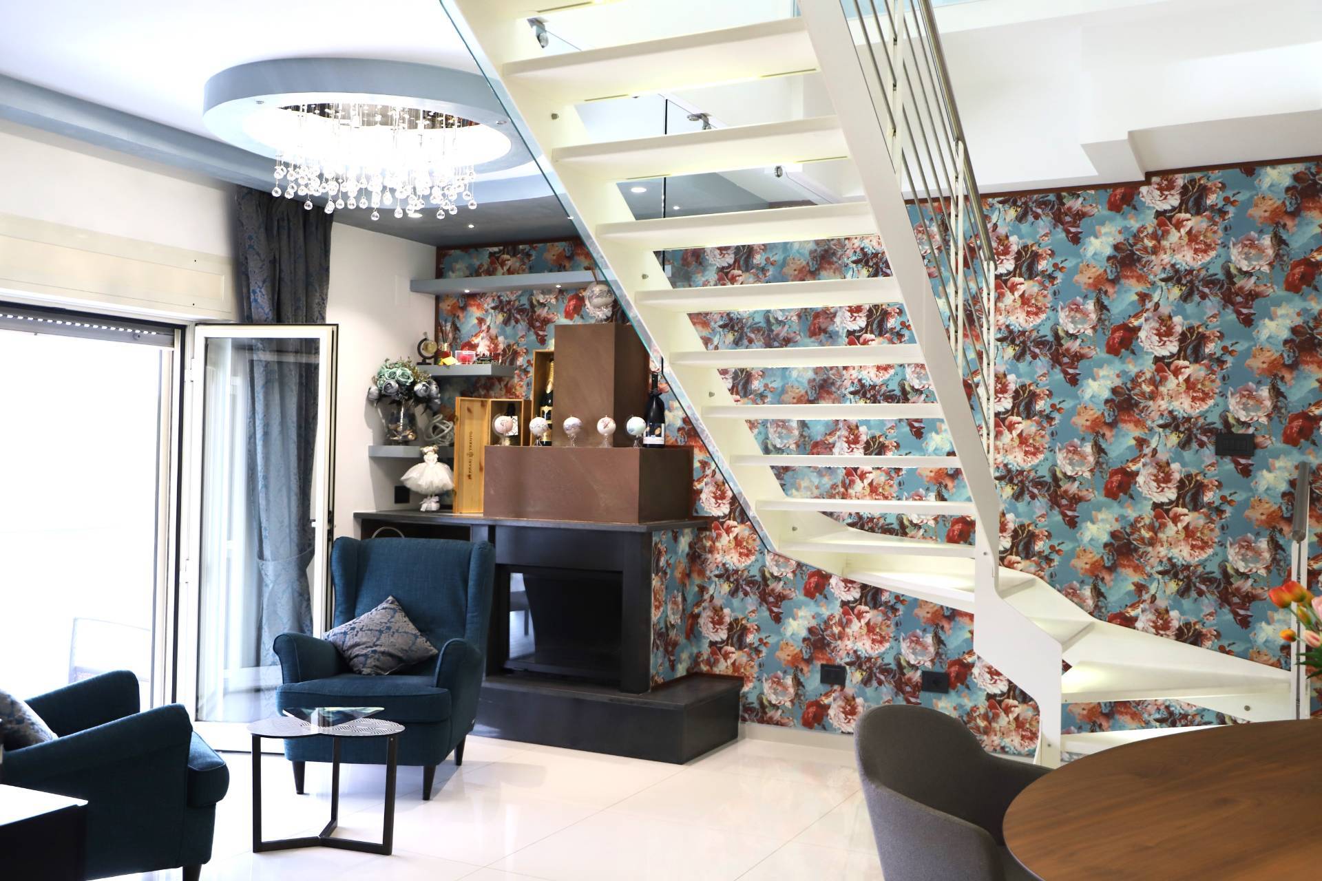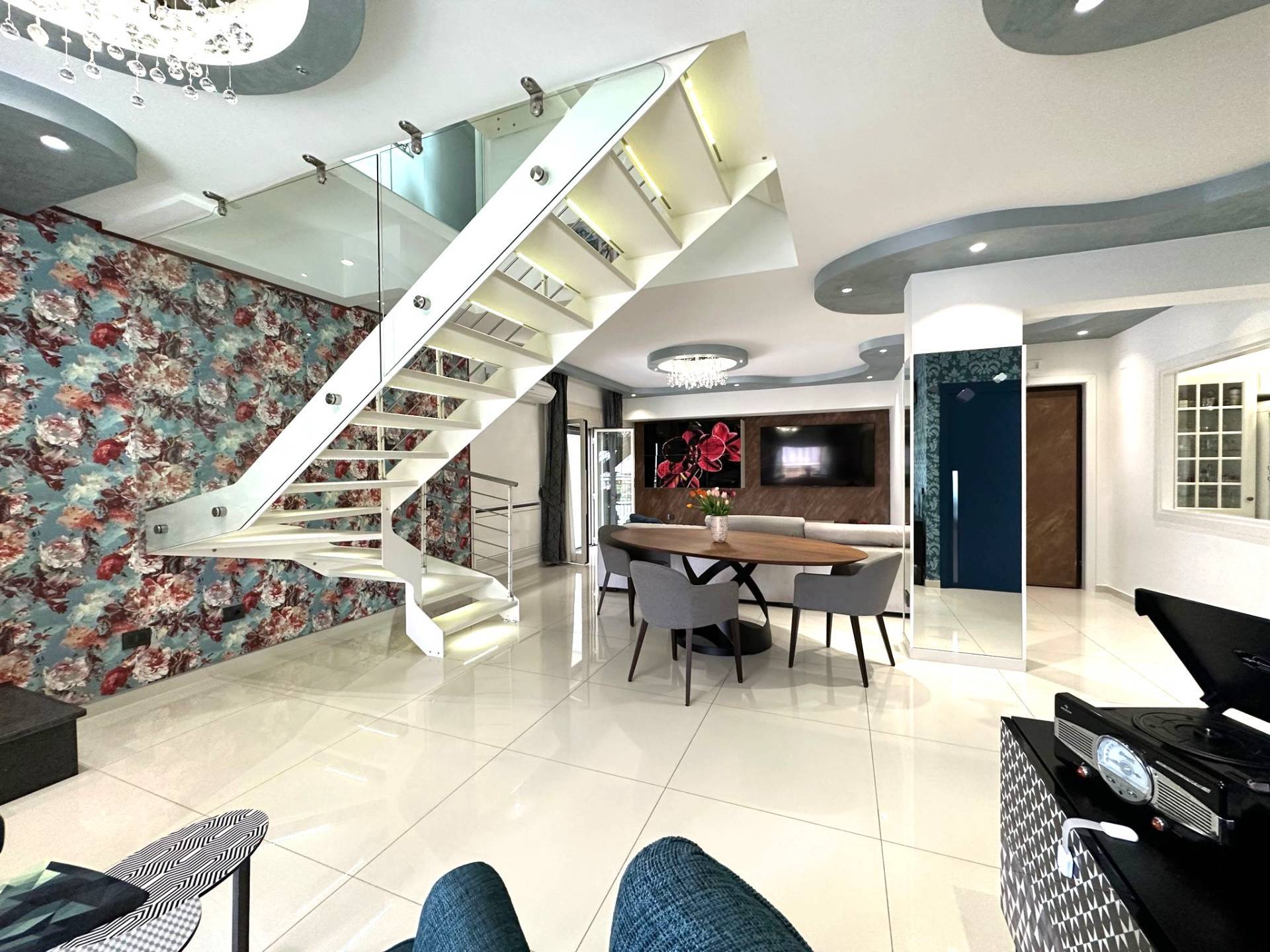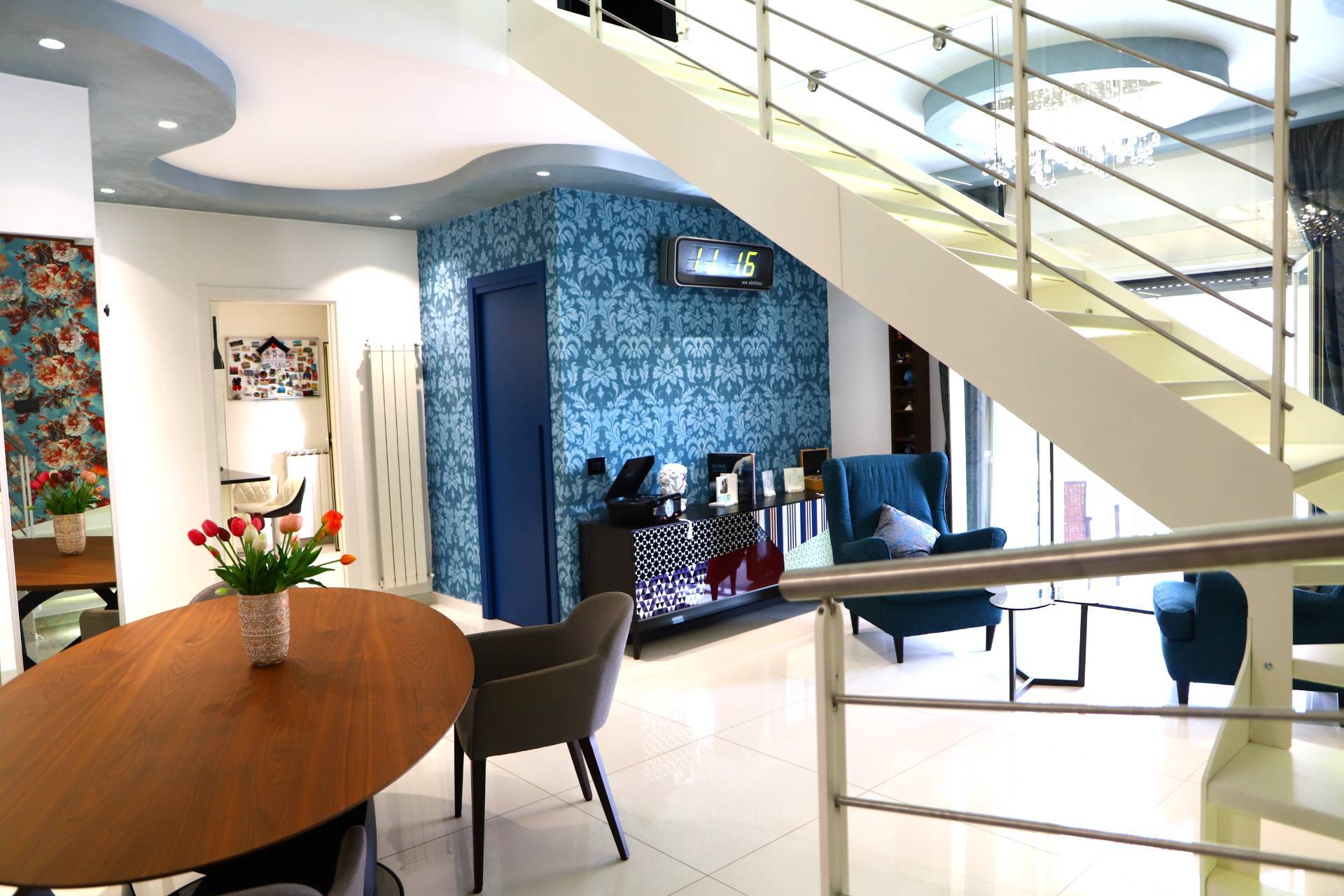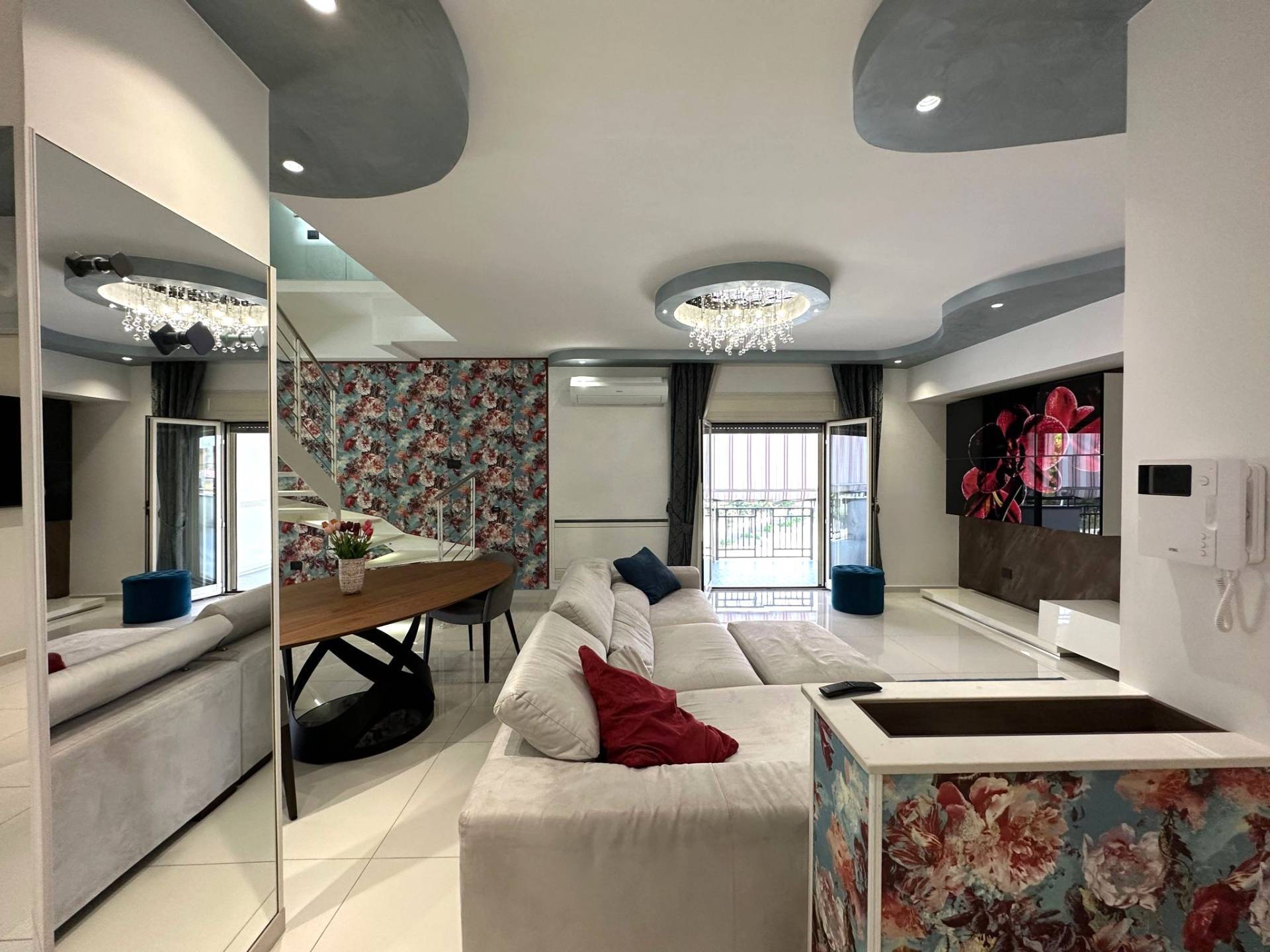 L'appartamento finemente curato in ogni dettaglio, climatizzato in ogni camera , luce di emergenza in ogni camera, zanzariere, camino, tende da sole esterne.