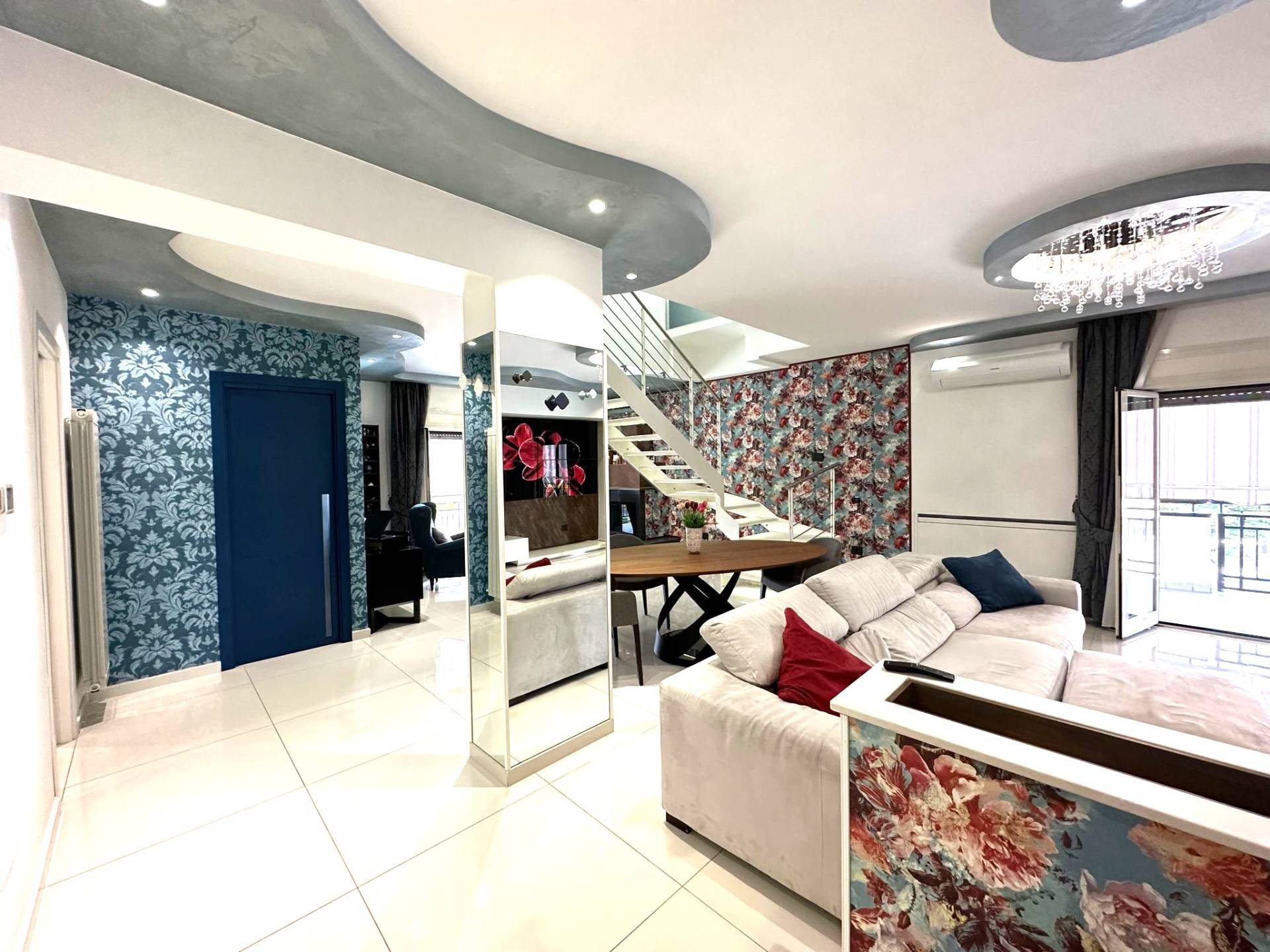 MADDALONI - VIA NAPOLI Se cerchi leleganza, gli ampi spazi, le ottime rifiniture, la tranquillit e la comodit di avere tutti i servizi a portata di mano, questa soluzione quella adatta a te In Via Napoli ,Zona servita da negozi di ogni genere (supermercati, famacie, abbigliamento, tabacchi), nelle immediate prossimit dell'area fiera settimanale e della stazione ferroviaria di Maddaloni , proponiamo in esclusiva la vendita di ampio ed elegante appartamento duplex con terrazzo e box. Ubicato ai piani terzo e quarto di un tranquillo parco (SIMONA) , l'appartamento rifinito con materiali di pregiata qualit e gradevolissimo gusto, ed cos composto: Ad accoglierci al piano terzo, un ampio e luminosissimo salone a vista con camino , il quale, con la sua eleganza, i suoi colori perfettamente abbinati agli arredi ed ai giochi di controsoffitto, vi lascer a bocca aperta catturando la vostra attenzione e suscitando in voi, ancora di pi, la voglia e la curiosit di visionare la restante parte dell'immobile.