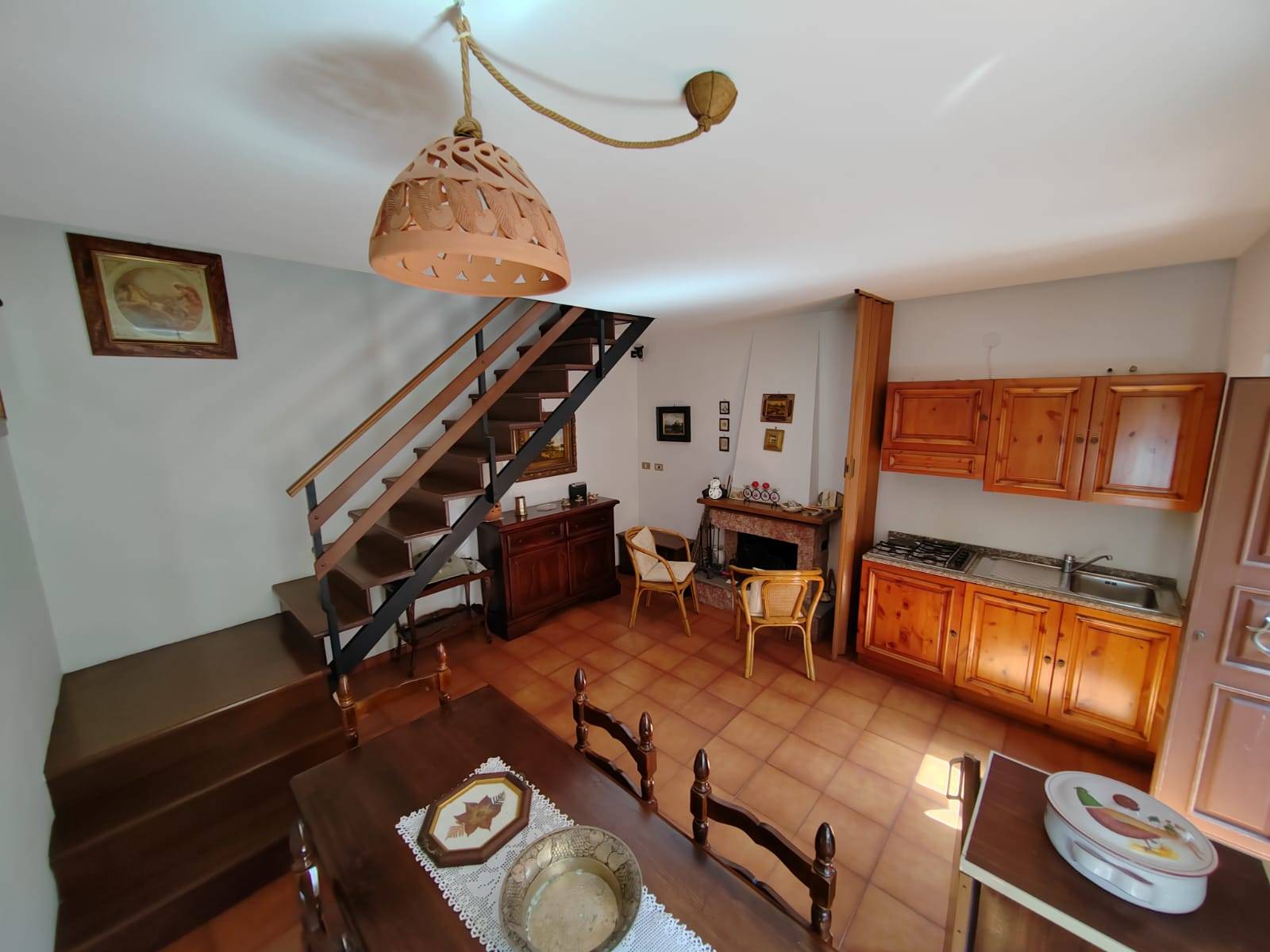 La soluzione si compone di una cucina abitabile con camino, perfetta per cene accoglienti, e una zona pranzo al piano terra rialzato.