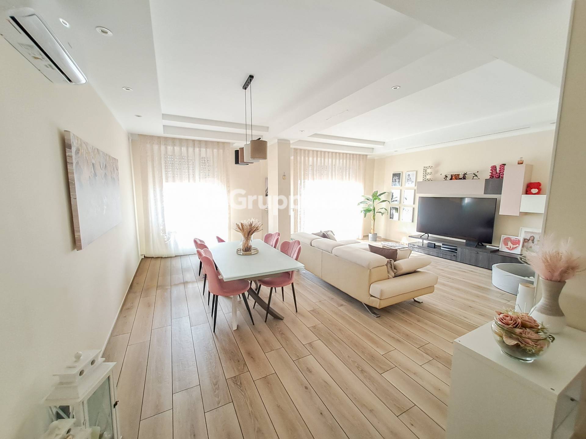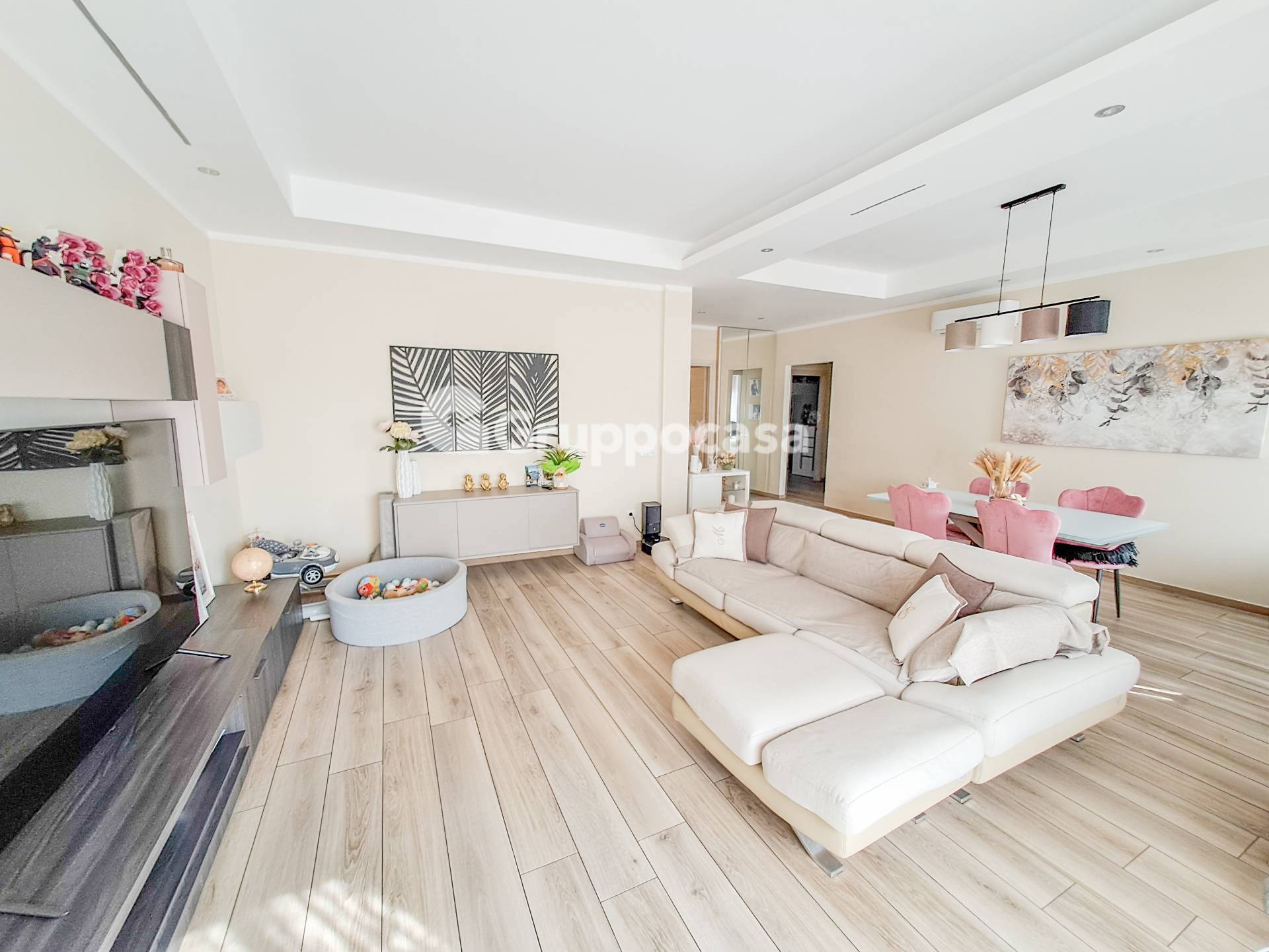 Il trilocale composto da ingresso, salone, cucina abitabile, due camere da letto, doppi servizi, terrazzo di circa 30 mq e balcone.
