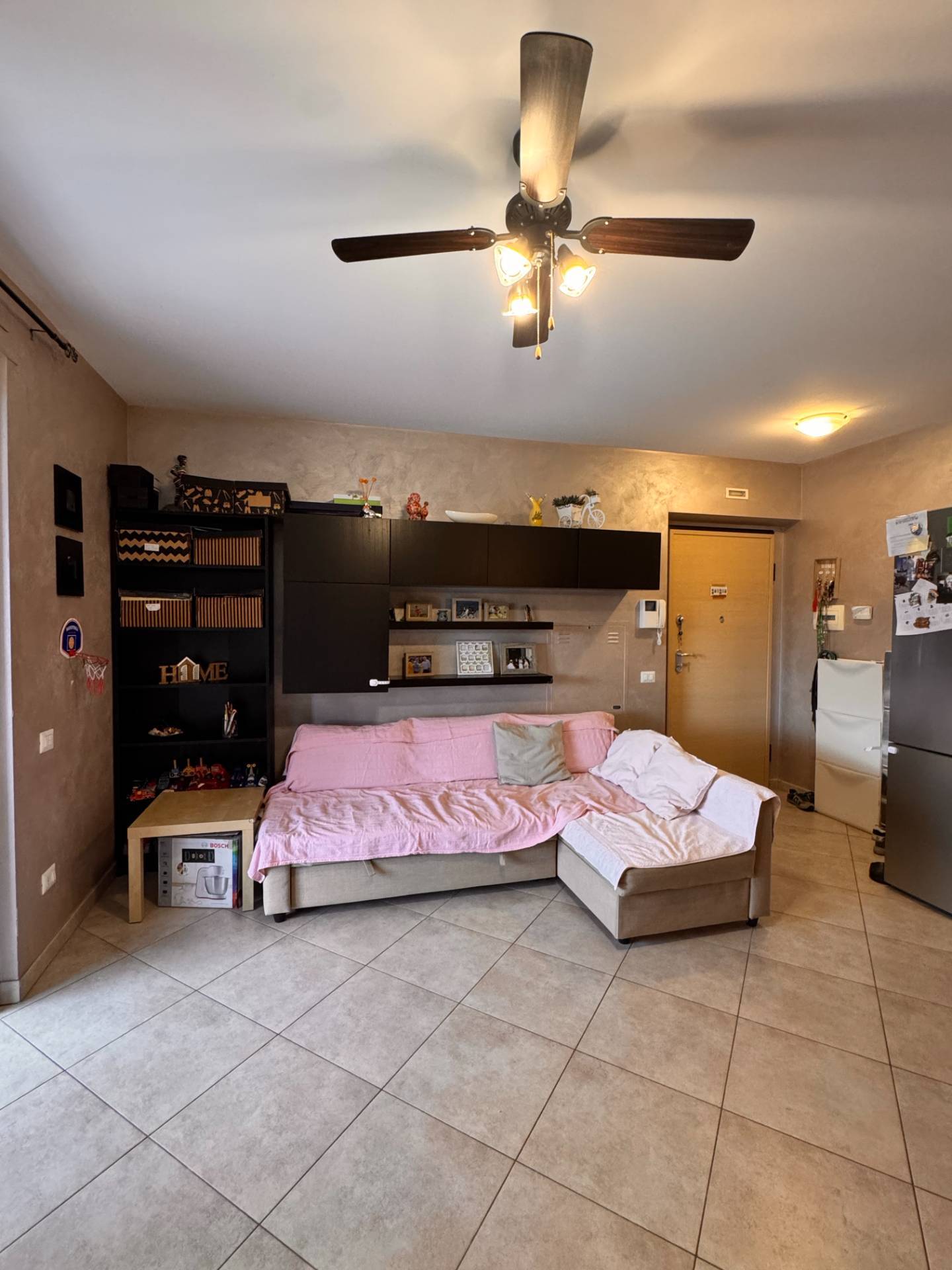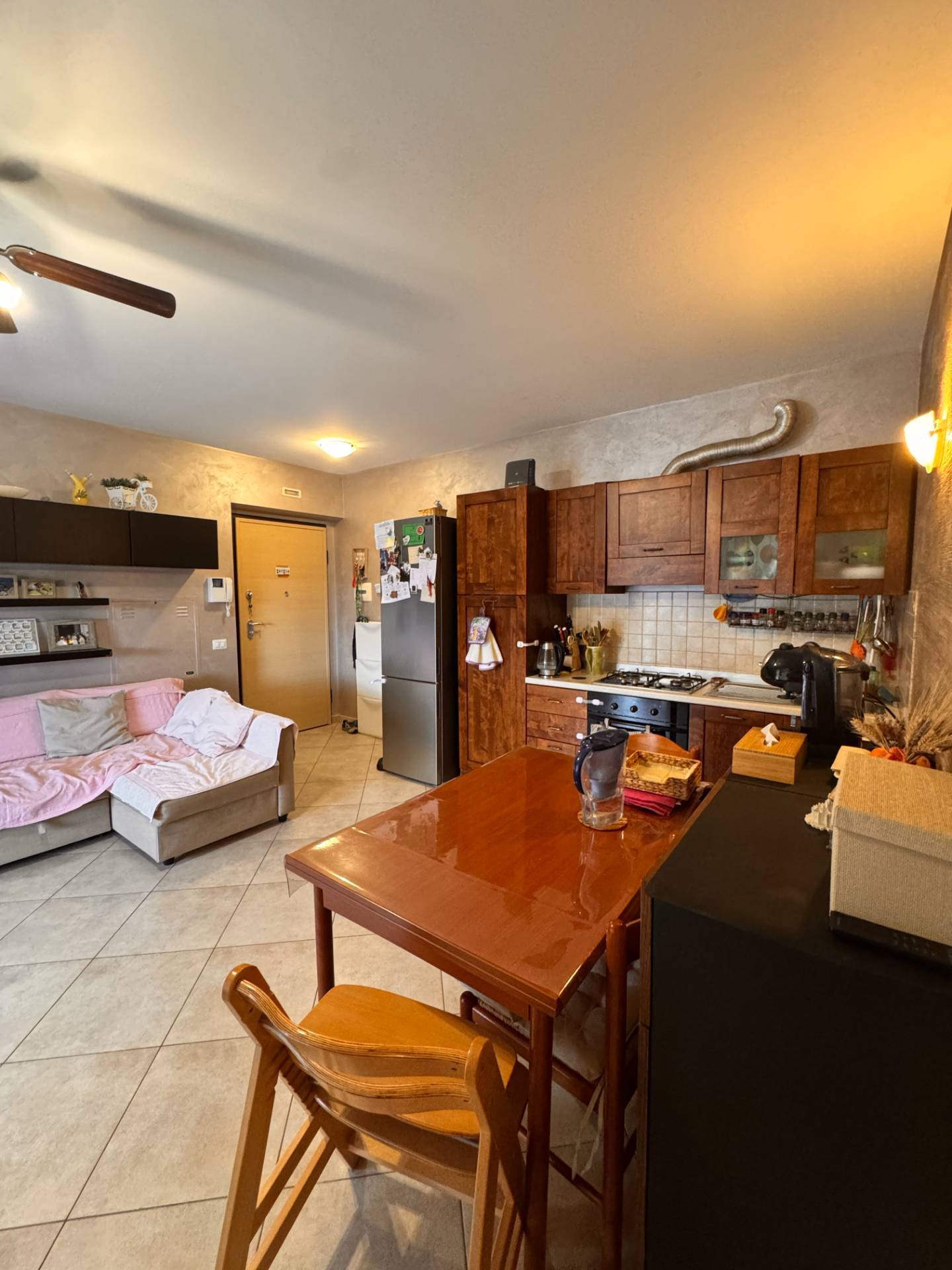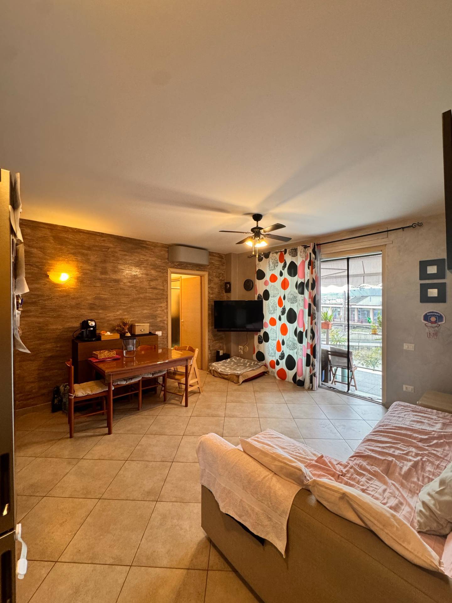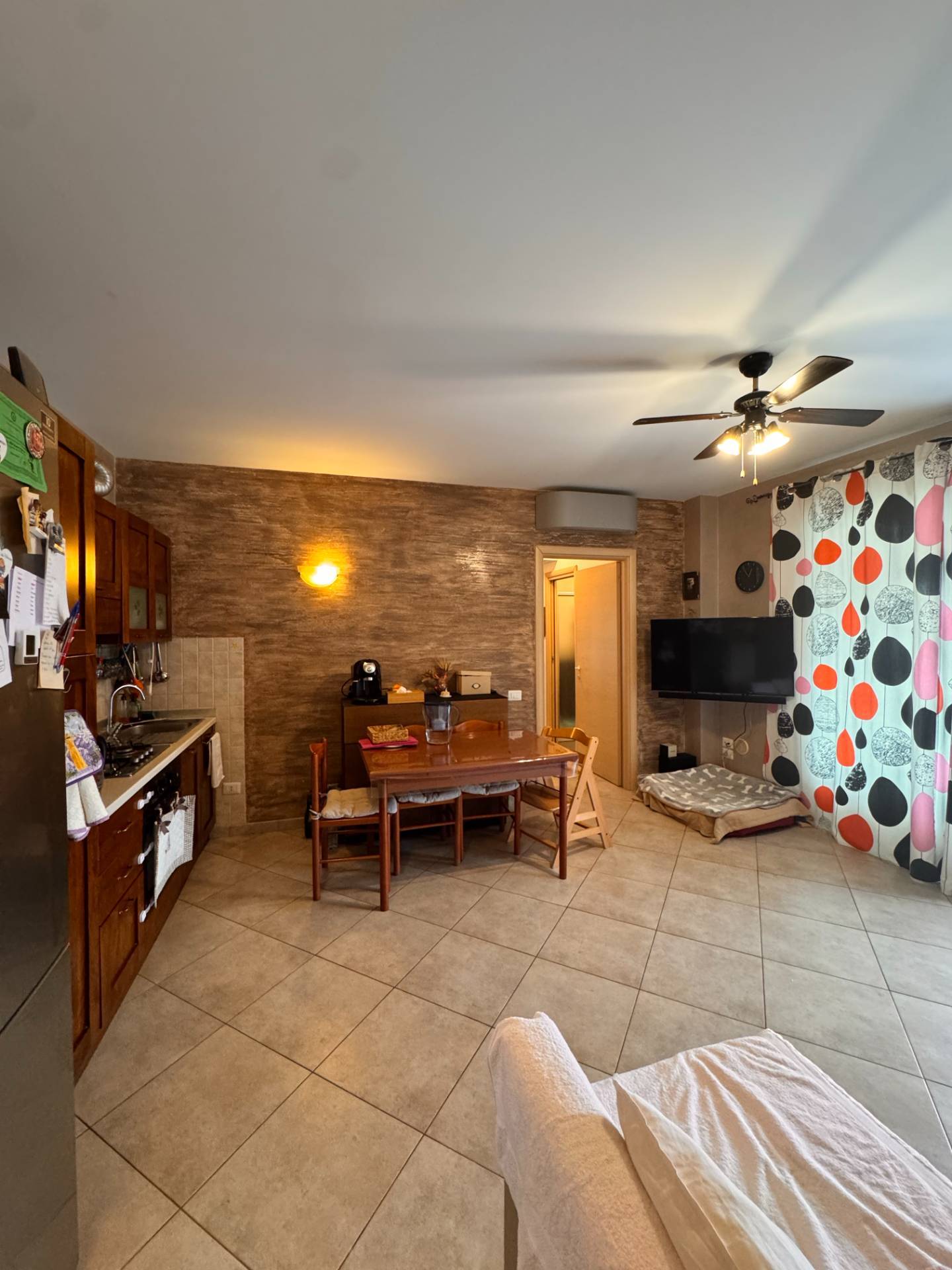 Al suo interno troviamo un unico locale cucina/soggiorno con un grande finestrone scorrevole con accesso al terrazzo, reparto notte con due camere, di cui una matrimoniale con cabina armadio e una cameretta, entrambe comunicanti al balcone esterno, ed un bagno finestrato con doccia e idoneo spazio per la lavatrice.