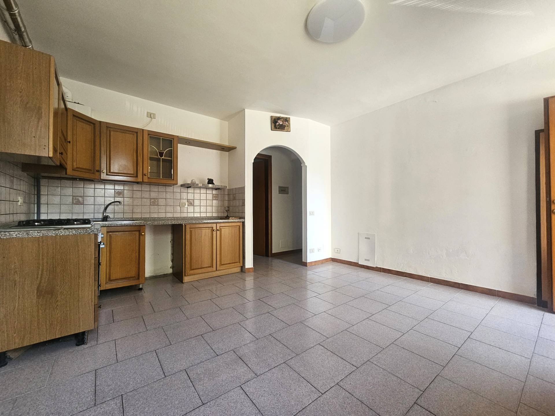 Lingresso conduce direttamente nella zona giorno, composta da un piccolo soggiorno con cucina a vista.