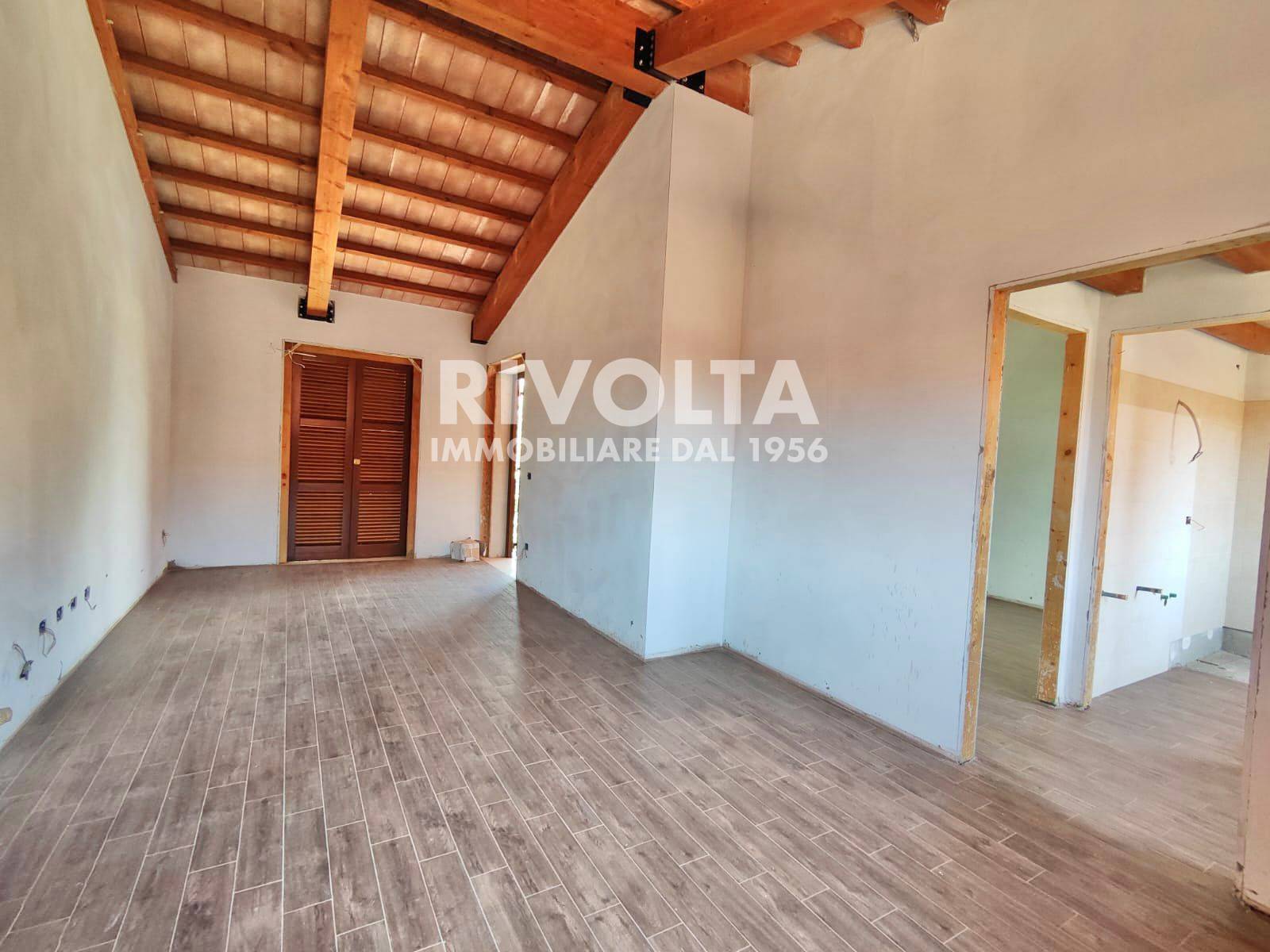 L'appartamento posto al primo piano caratterizzato da soffitti molto alti, travi a vista e una terrazza vivibile.
