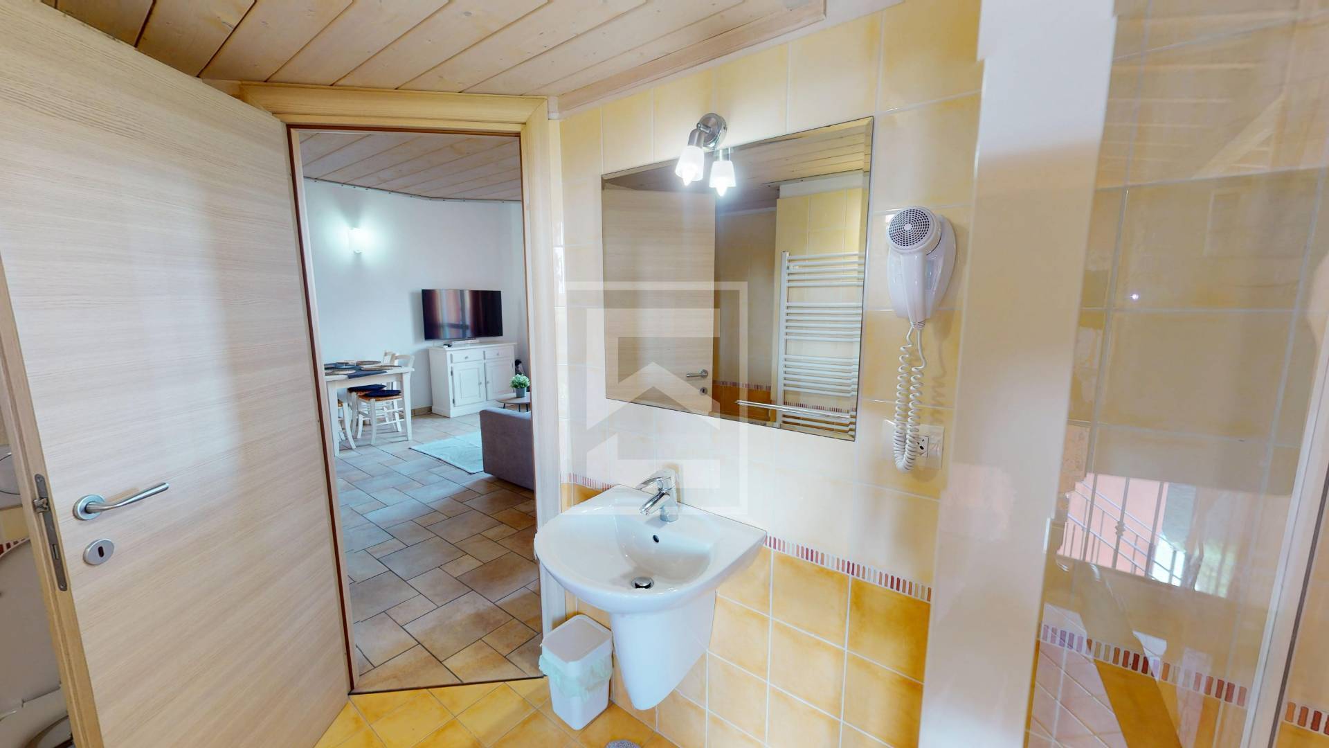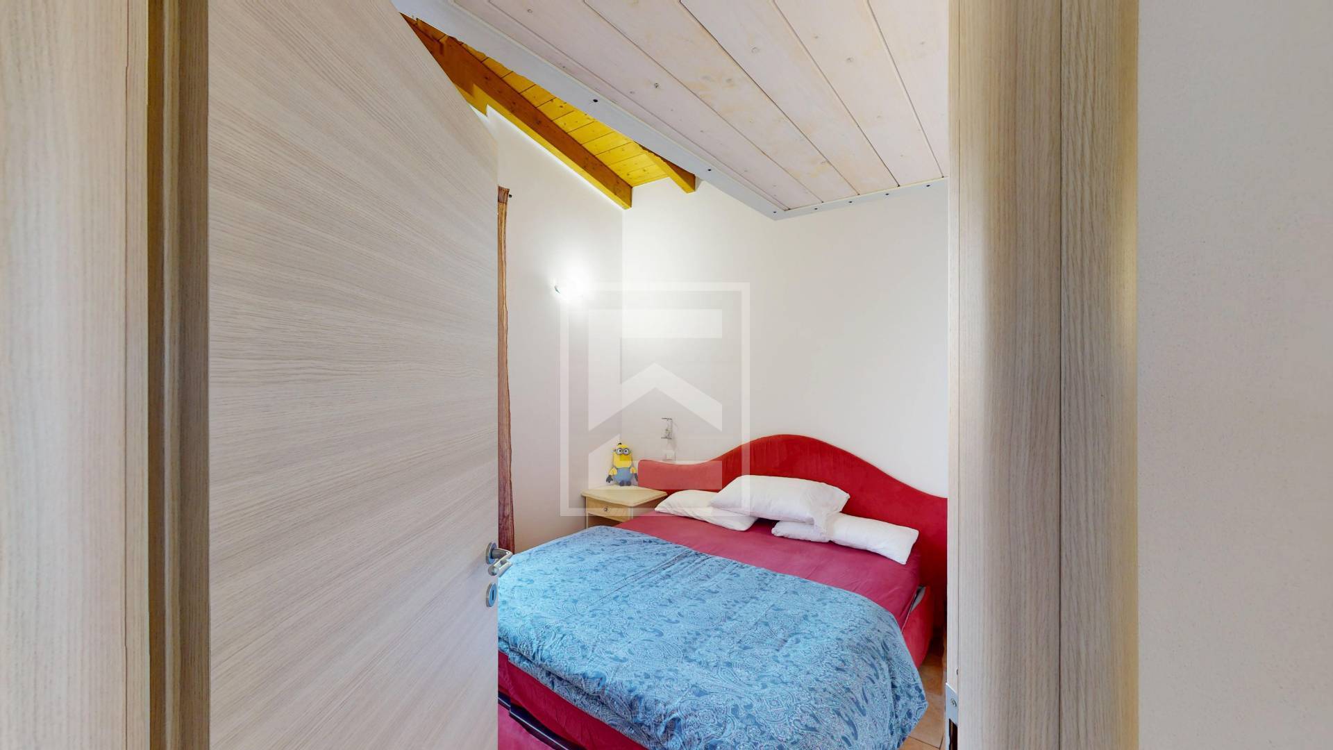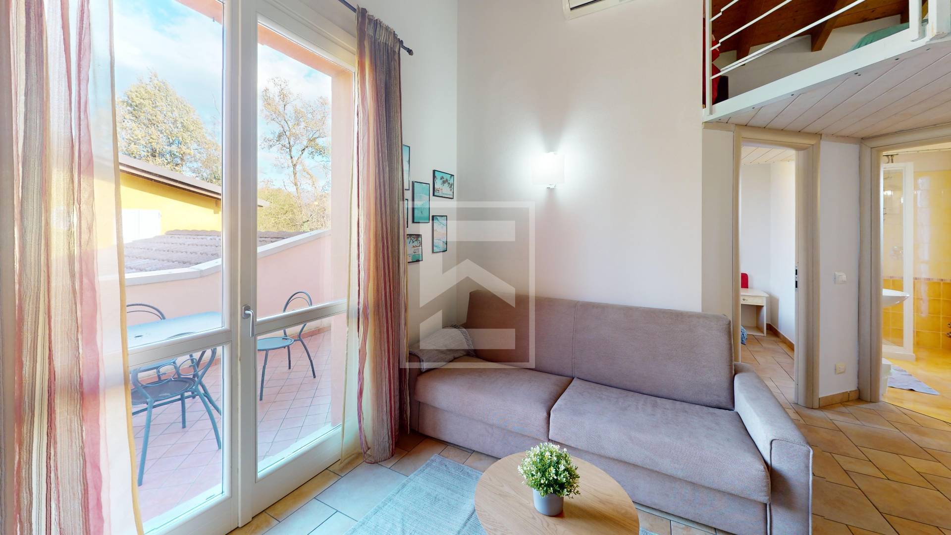 L'appartamento dispone di una luminosa camera da letto anch'essa affacciata sulla terrazza e una seconda zona letto ricavata nel soppalco . Il bagno, moderno e dotato di tutti i comfort, provvisto di una comoda doccia.