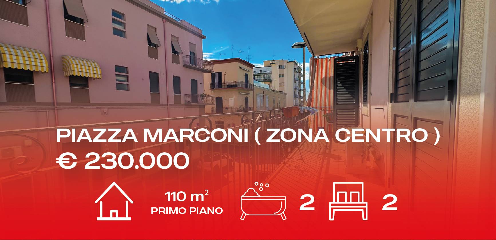 Casa in vendita Piazza Guglielmo Marconi (Zona Centro, Manfredonia) Una soluzione ampia, luminosa e nel cuore pulsante della citt! 110 mq al primo piano, perfetti per chi desidera spazio e centralit 2 ampie camere, ideali per comfort e relax 2 zone giorno distinte, versatili e accoglienti Ampia cucina, perfetta per chi ama cucinare e ricevere ospiti 2 bagni, pratici e funzionali per la vita quotidiana Posizionata in Piazza Guglielmo Marconi, a pochi passi da tutti i principali servizi e attrazioni del centro di Manfredonia.